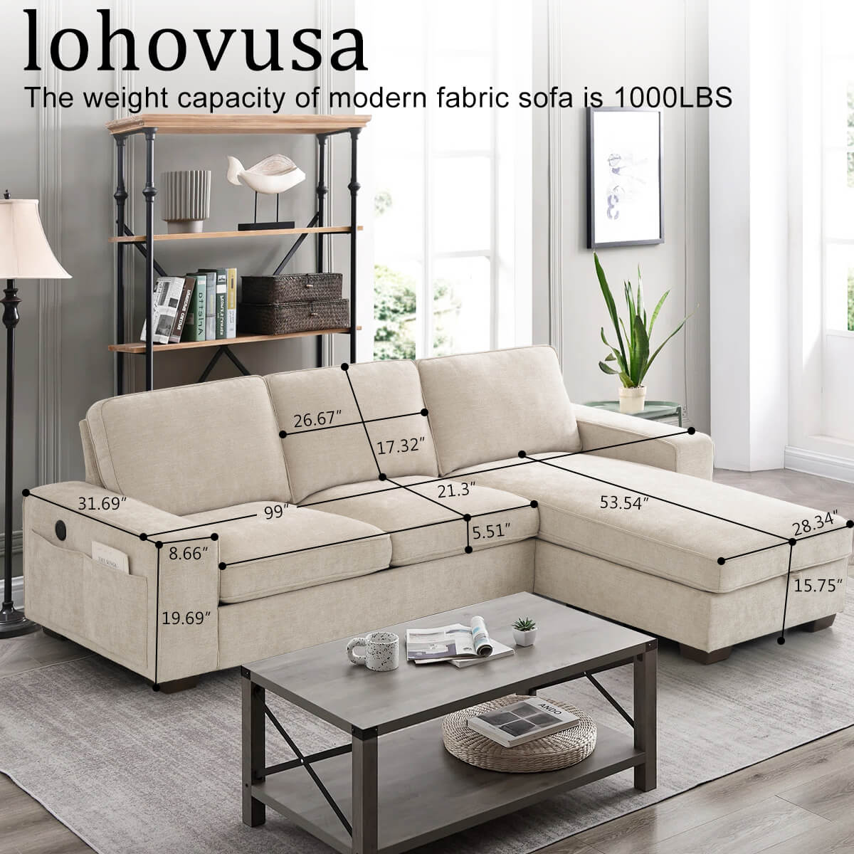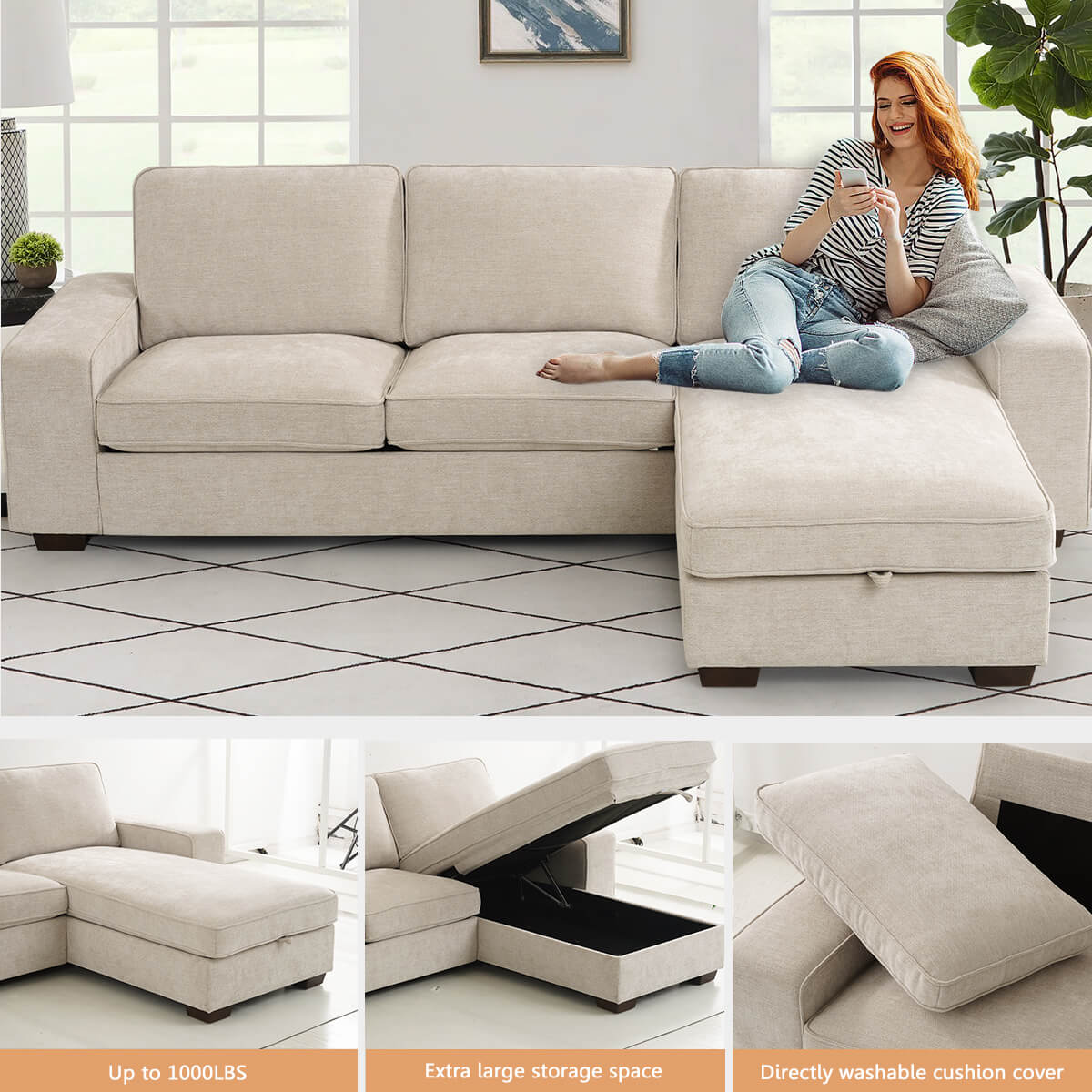 99" L-Shaped Convertible Sectional Sofa with 190L Storage Chaise
