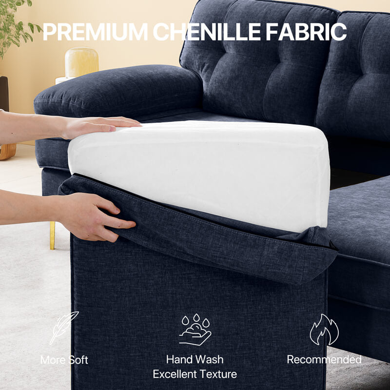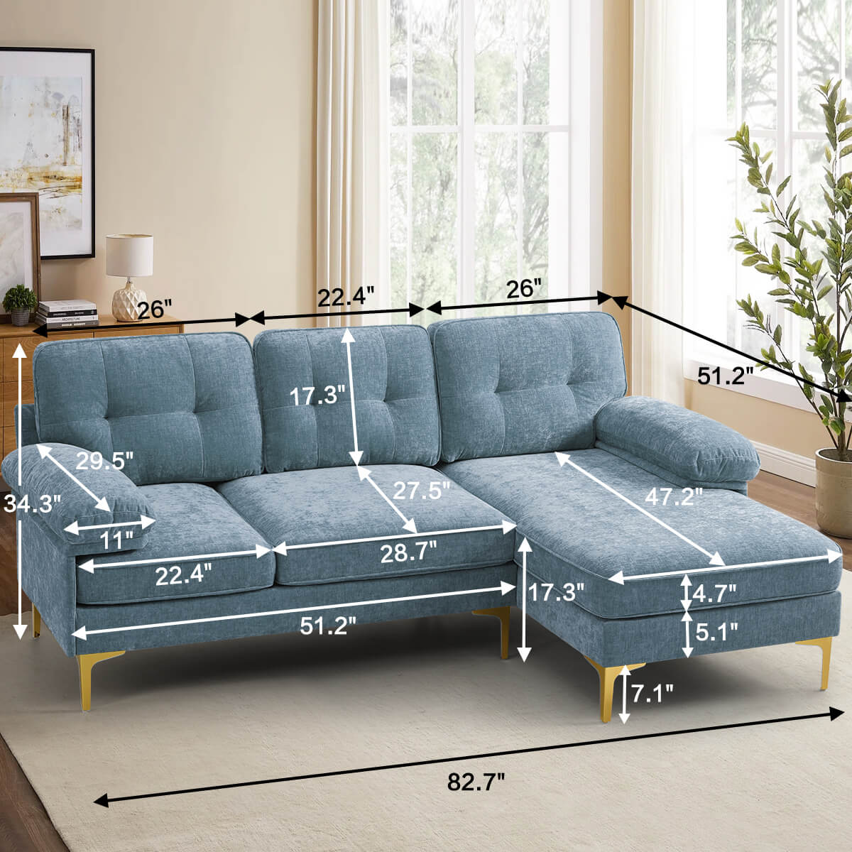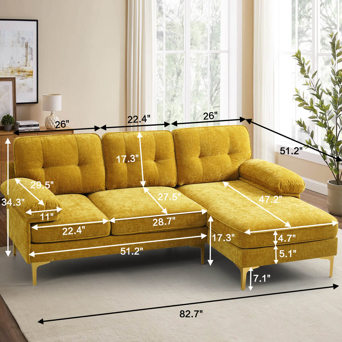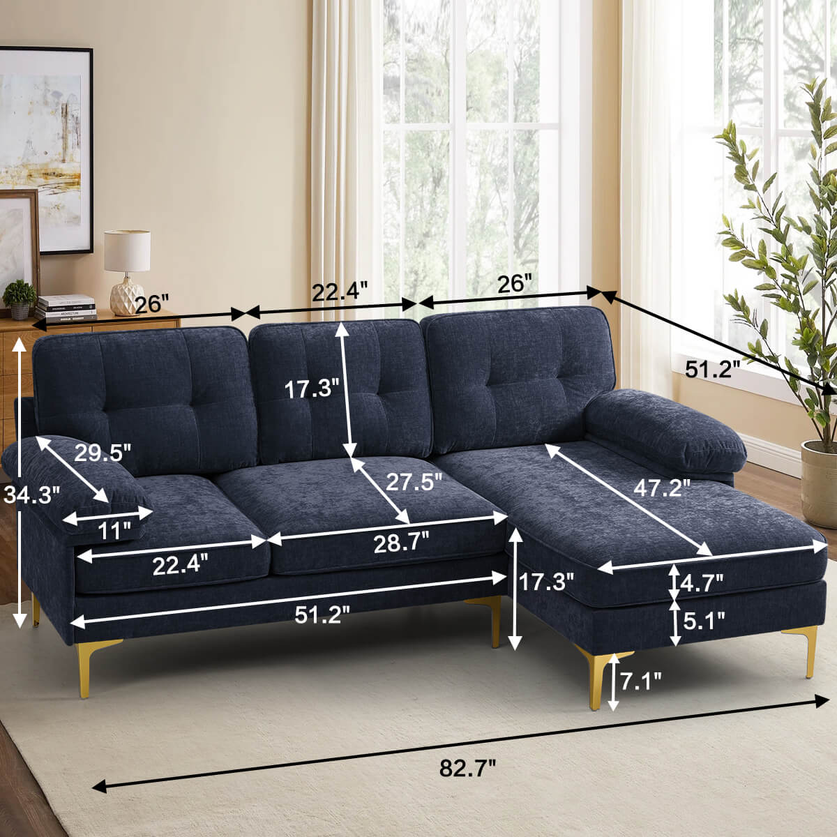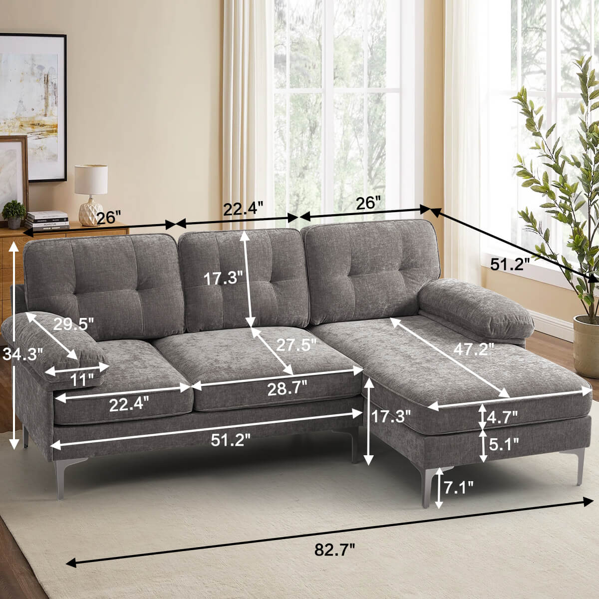 Convertible Sectional Sofa 83" L Shaped Couch with Reversible Chaise, Chenille Fabric