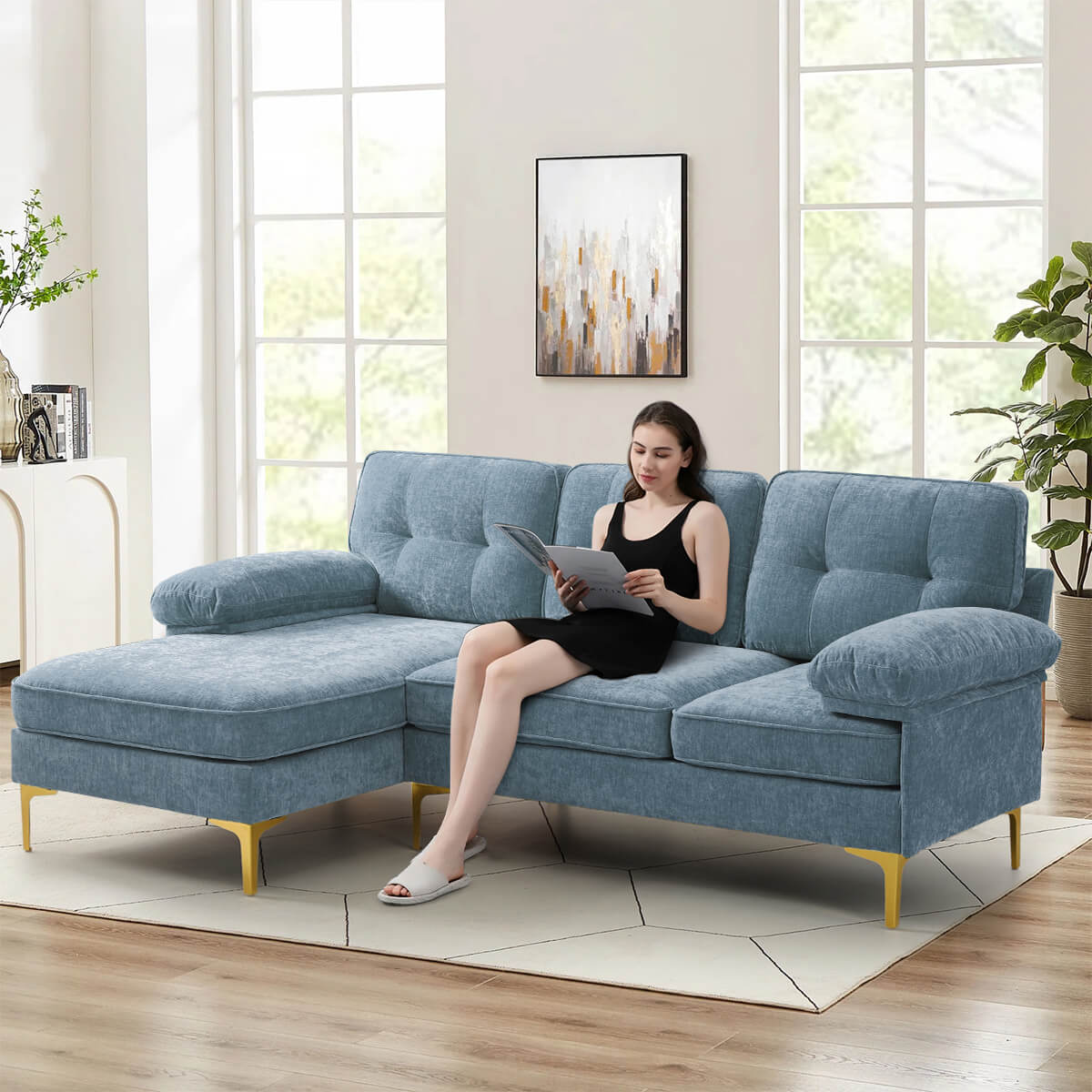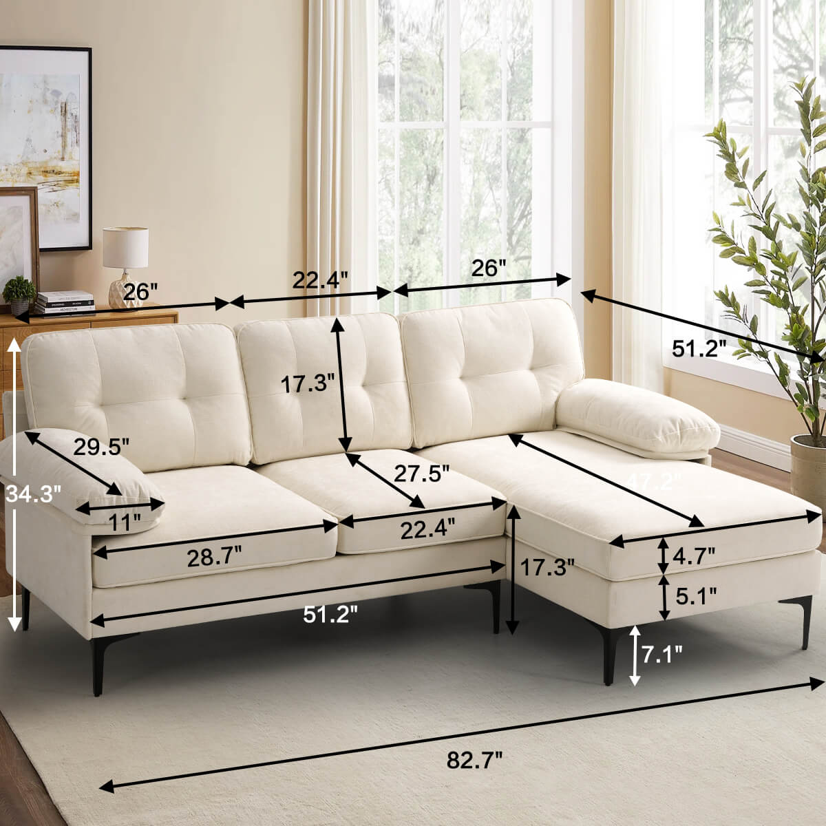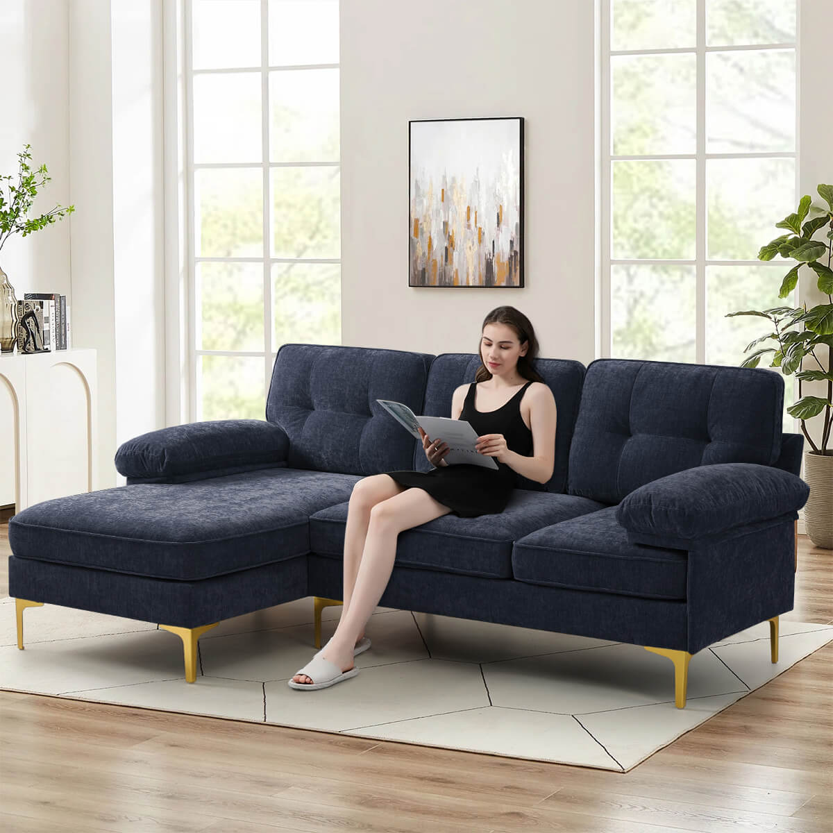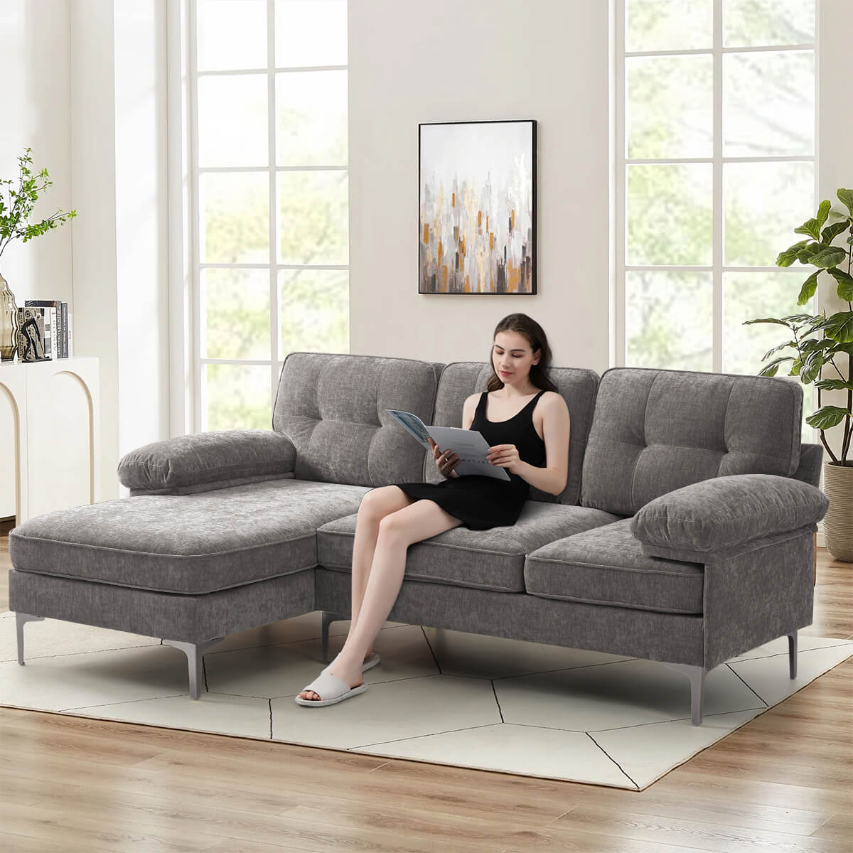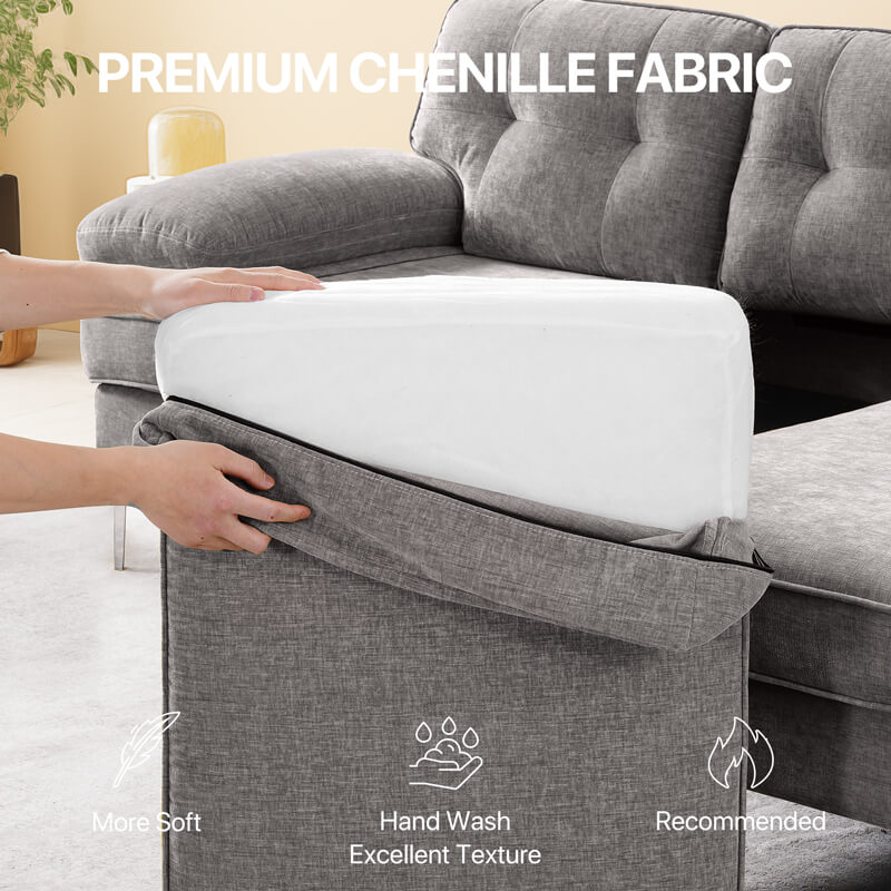 Convertible Sectional Sofa 83" L Shaped Couch with Reversible Chaise, Chenille Fabric