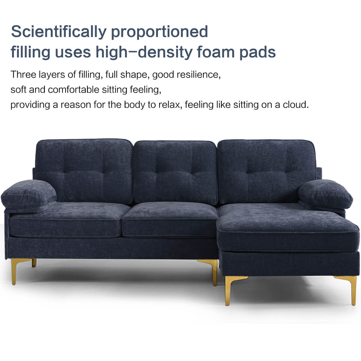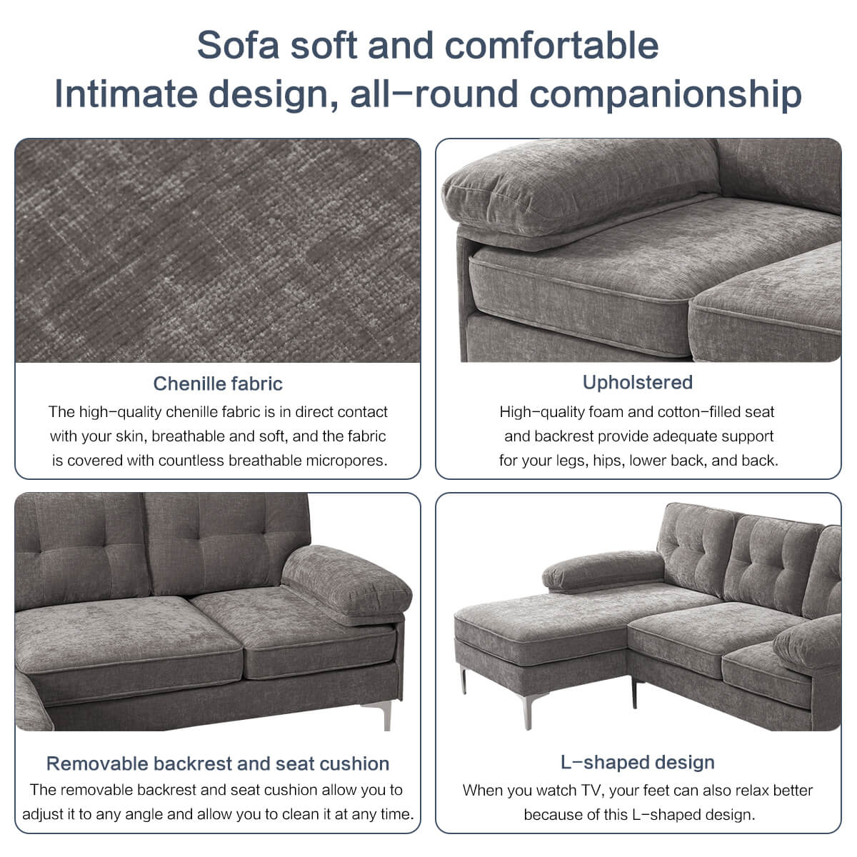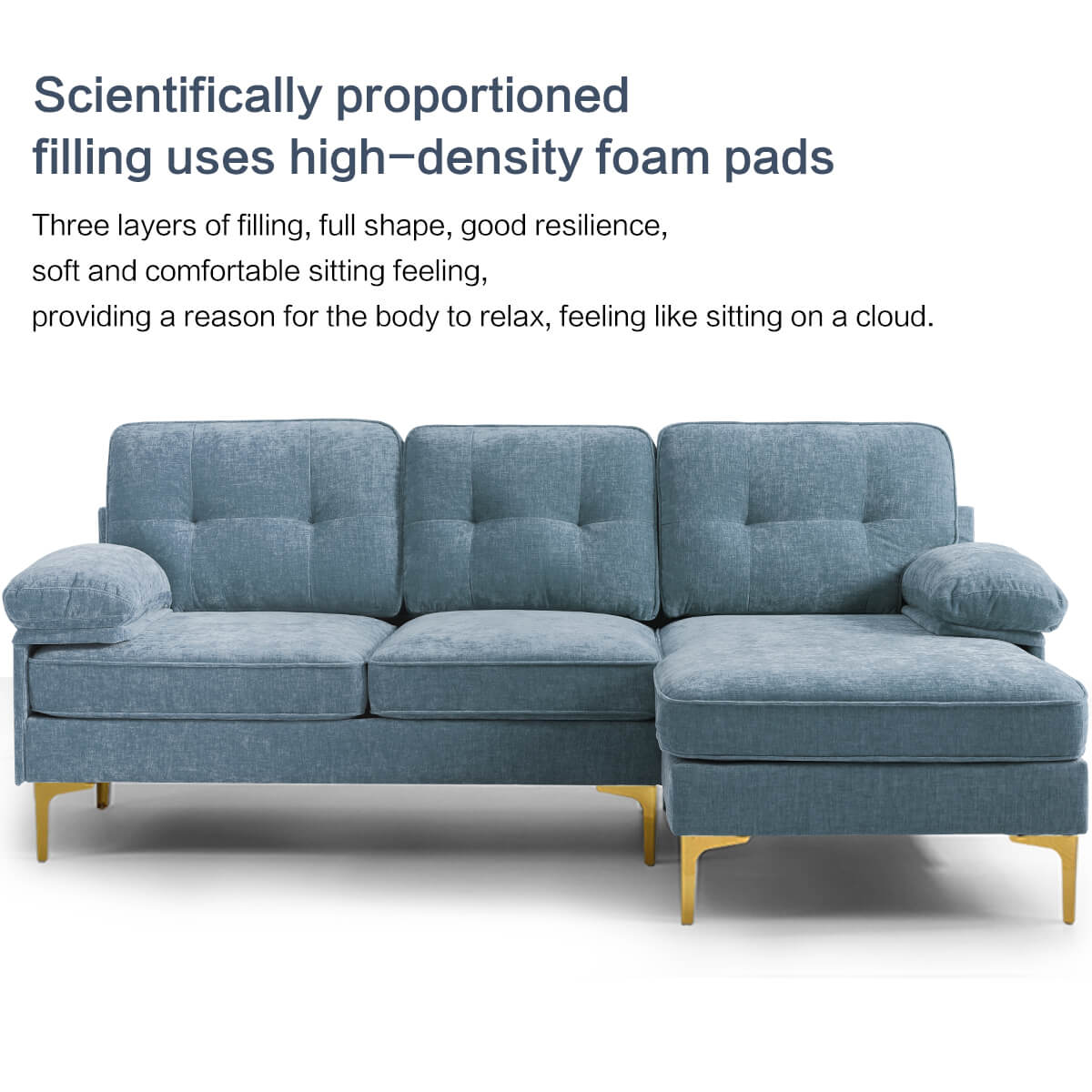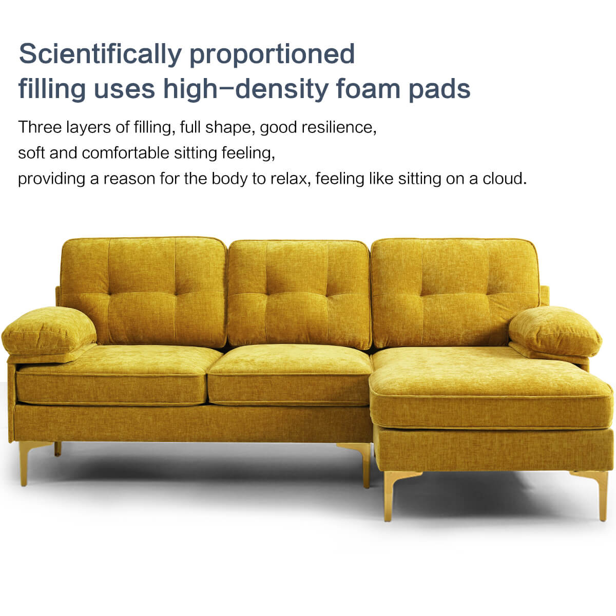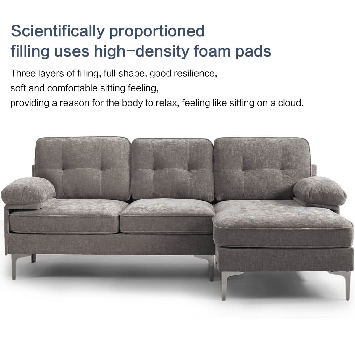 Light luxury design: This stylish sectional sofa seats up to four people and is the perfect addition to any study or living room. The chenille upholstery adds texture to the interior design, while the chromed metal legs pay homage to contemporary style. Removable high-density foam padding keeps the seat medium-firm.