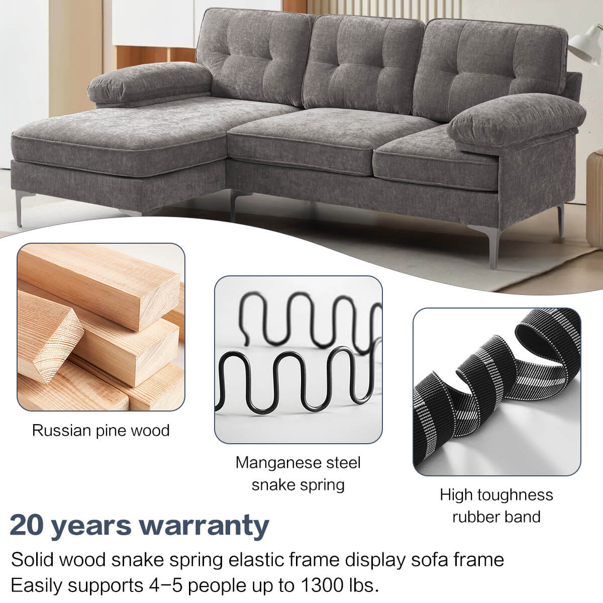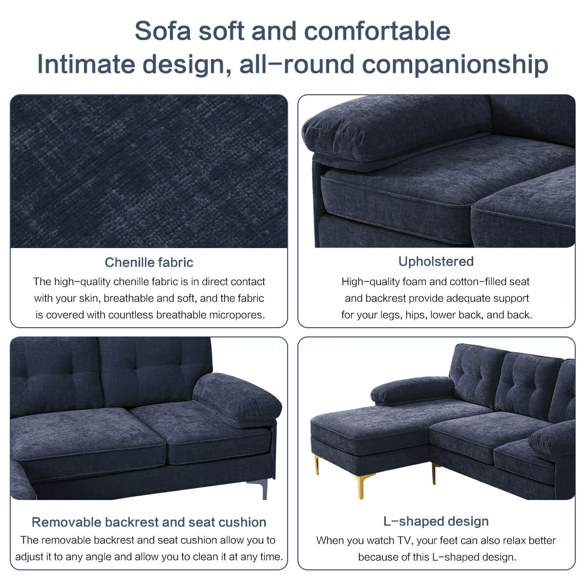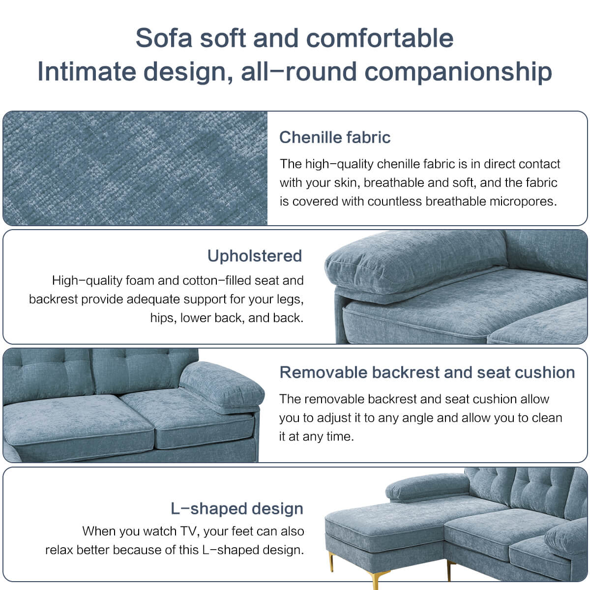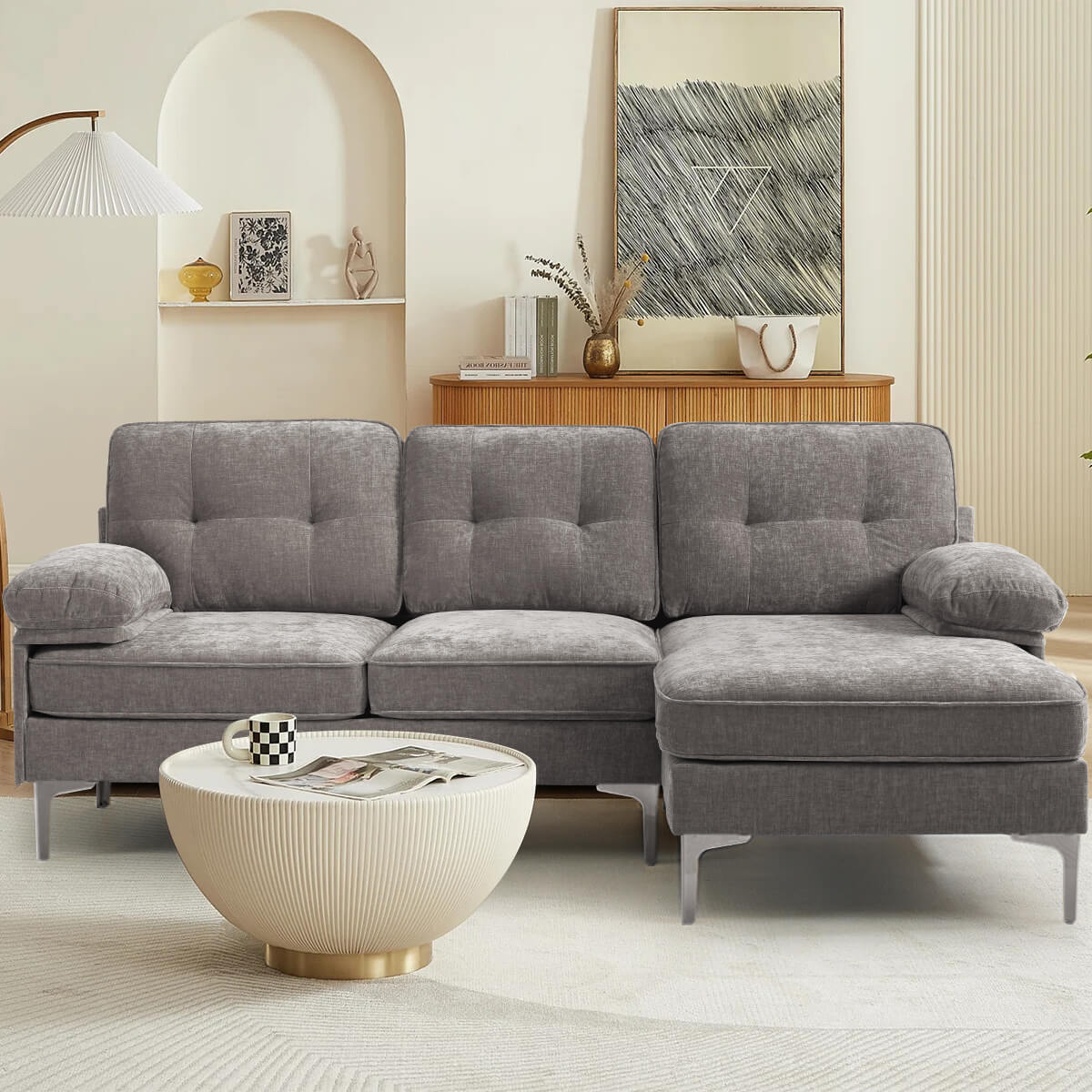 Light luxury design: This stylish sectional sofa seats up to four people and is the perfect addition to any study or living room. The chenille upholstery adds texture to the interior design, while the chromed metal legs pay homage to contemporary style. Removable high-density foam padding keeps the seat medium-firm.