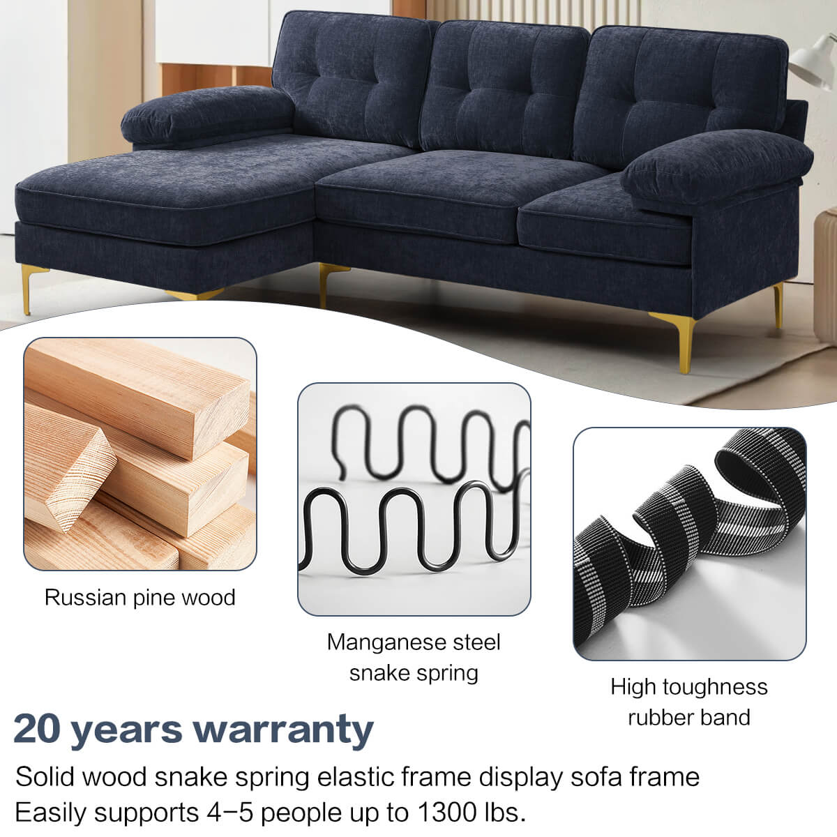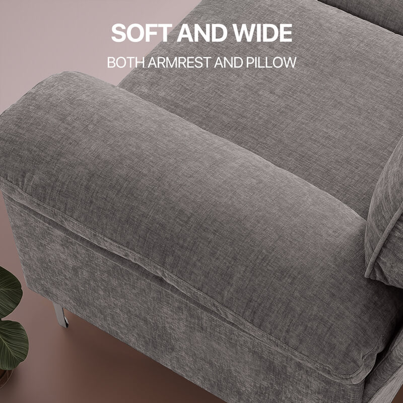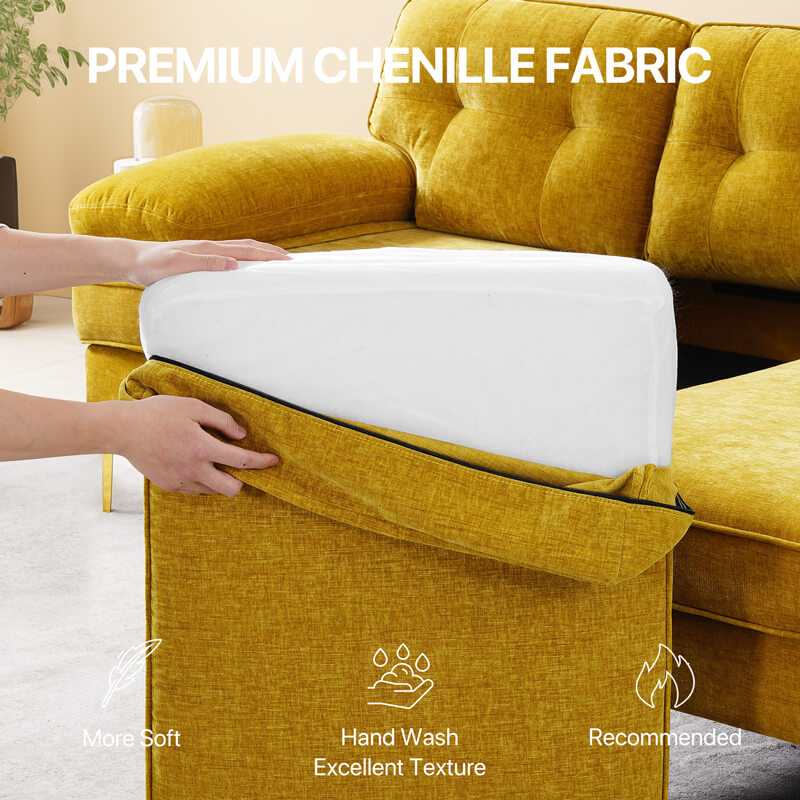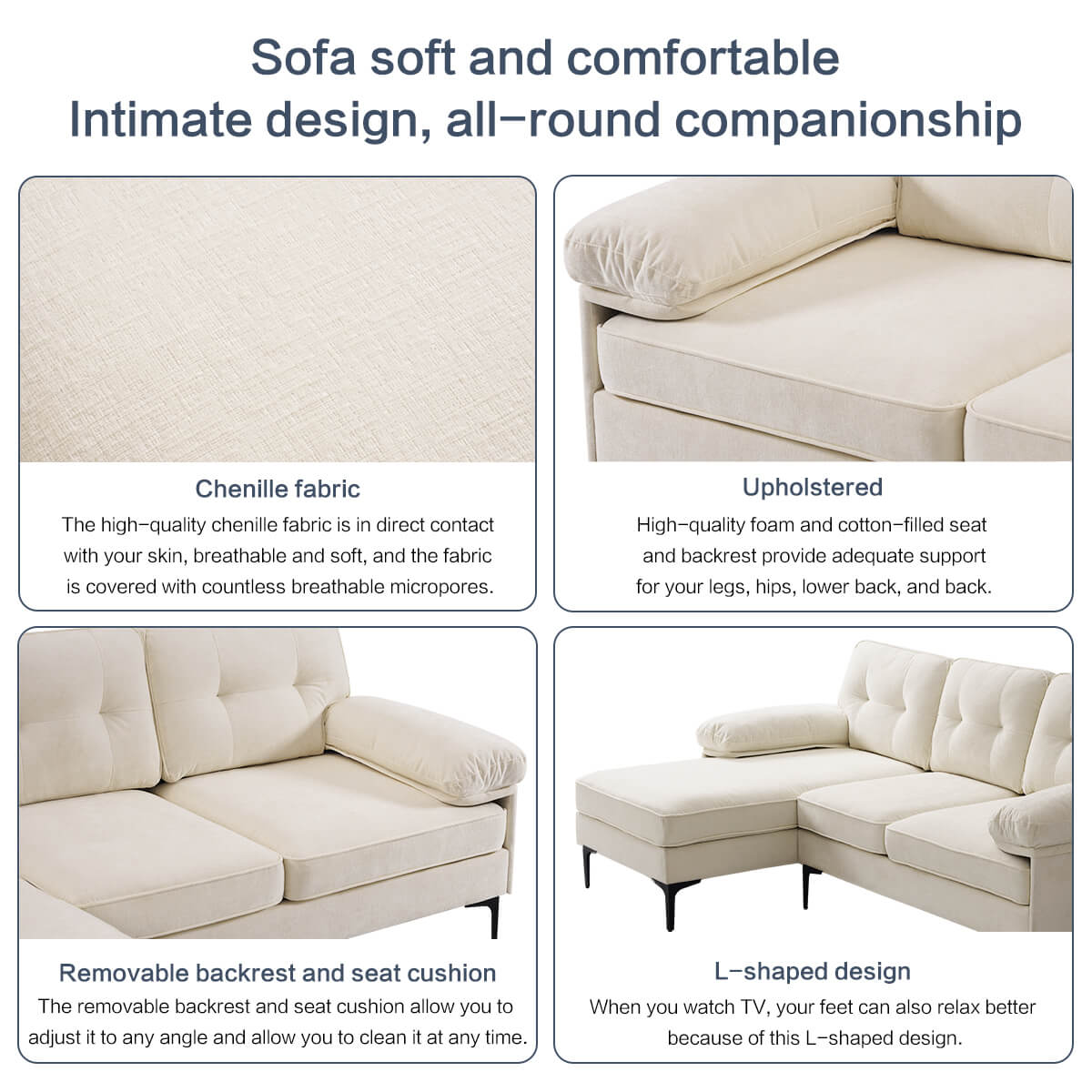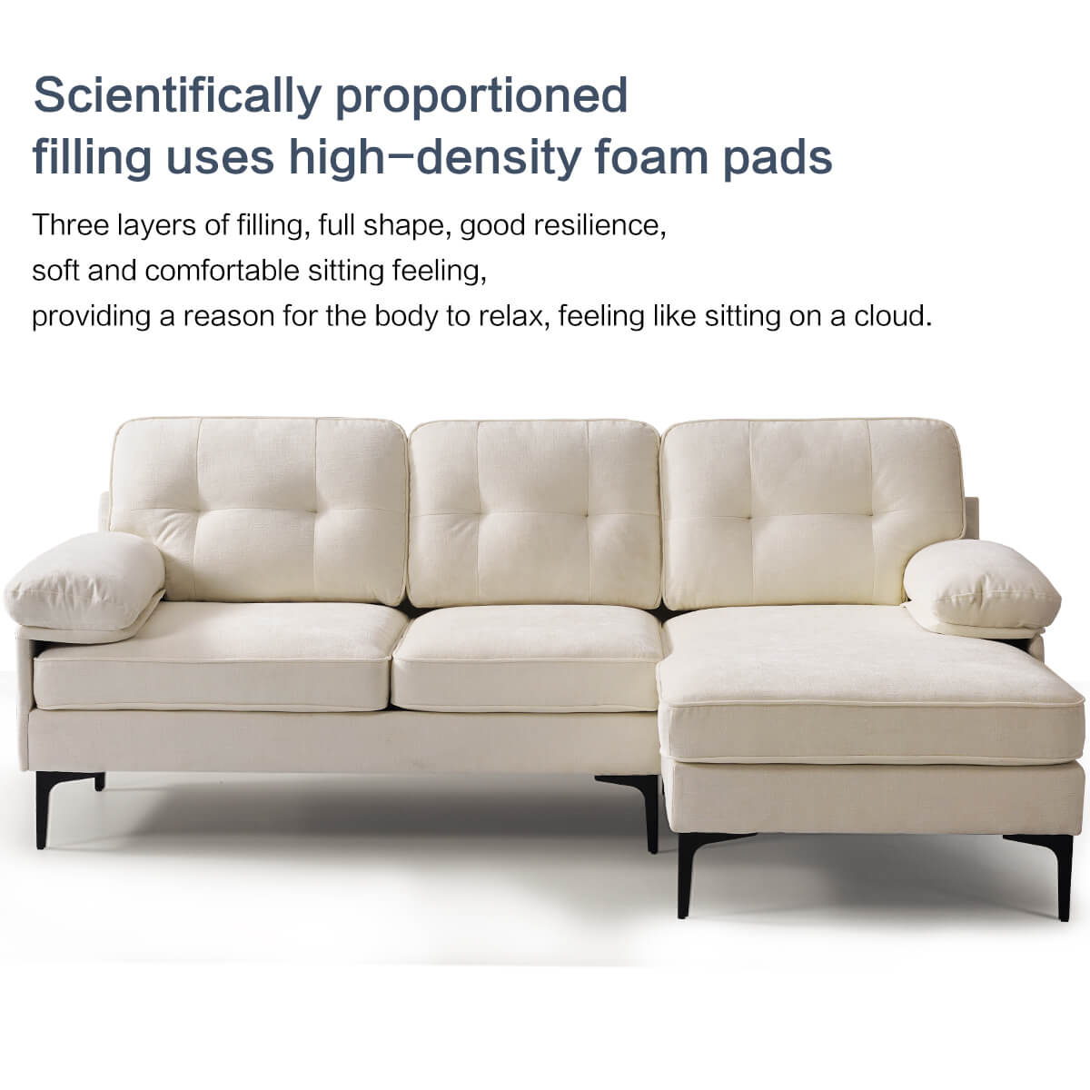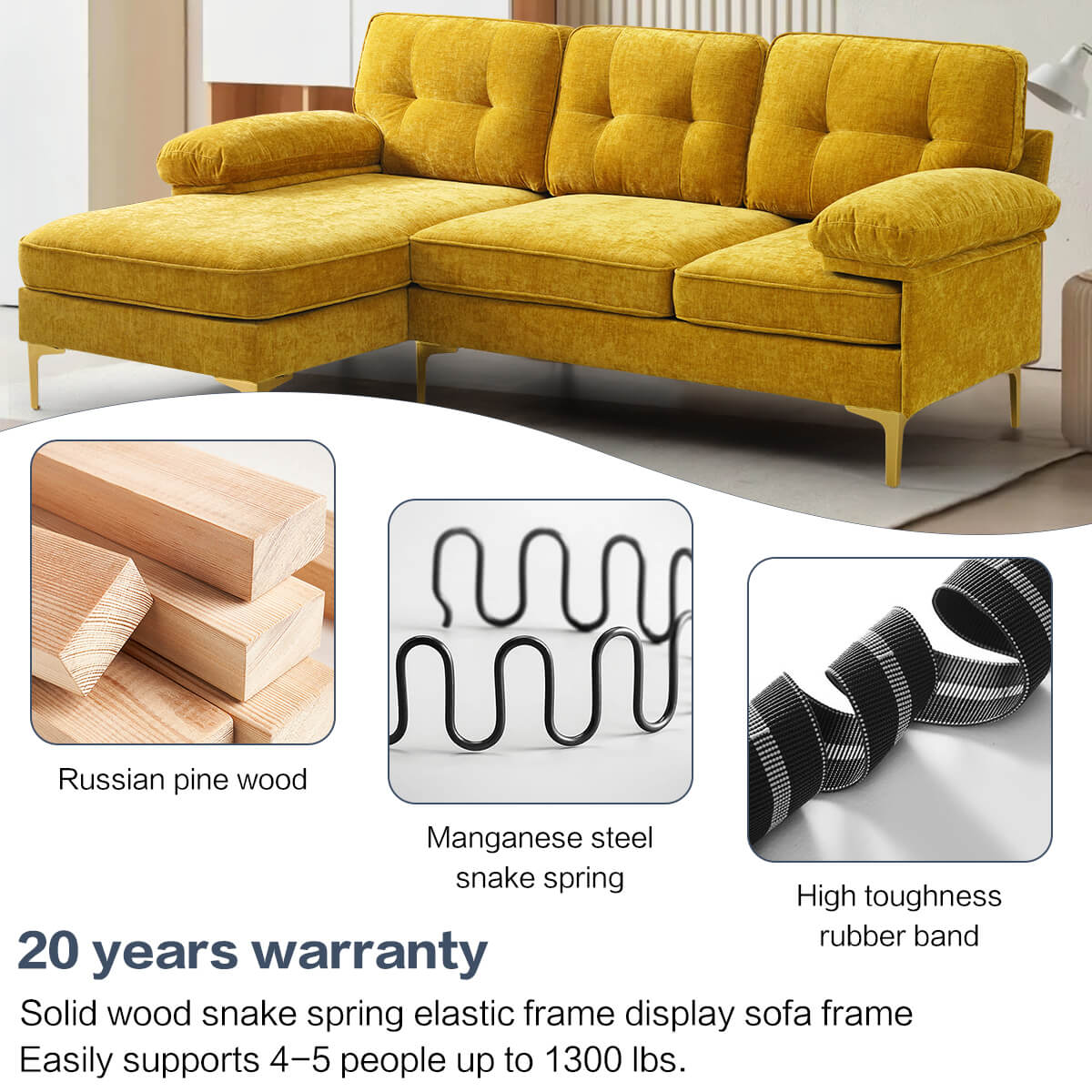 Light luxury design: This stylish sectional sofa seats up to four people and is the perfect addition to any study or living room. The chenille upholstery adds texture to the interior design, while the chromed metal legs pay homage to contemporary style. Removable high-density foam padding keeps the seat medium-firm.