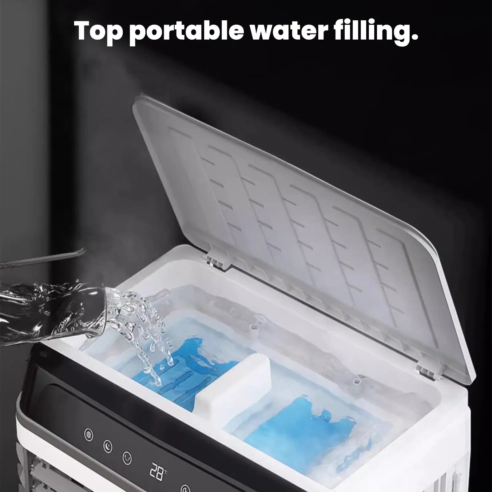 [TOP-REFILL DESIGN for ULTIMATECONVENIENCE] - Say goodbye to the hassle! This air cooler boasts a top-refill design that makes cooling a breeze. No more struggling with hoses or bending over. Simply remove the top cover and easily refill the water, no matter where you are. Convenience without boundaries. Moreover, if you have a garden hose, it is also compatible and can achieve automatic water filling and auto-pause functionality