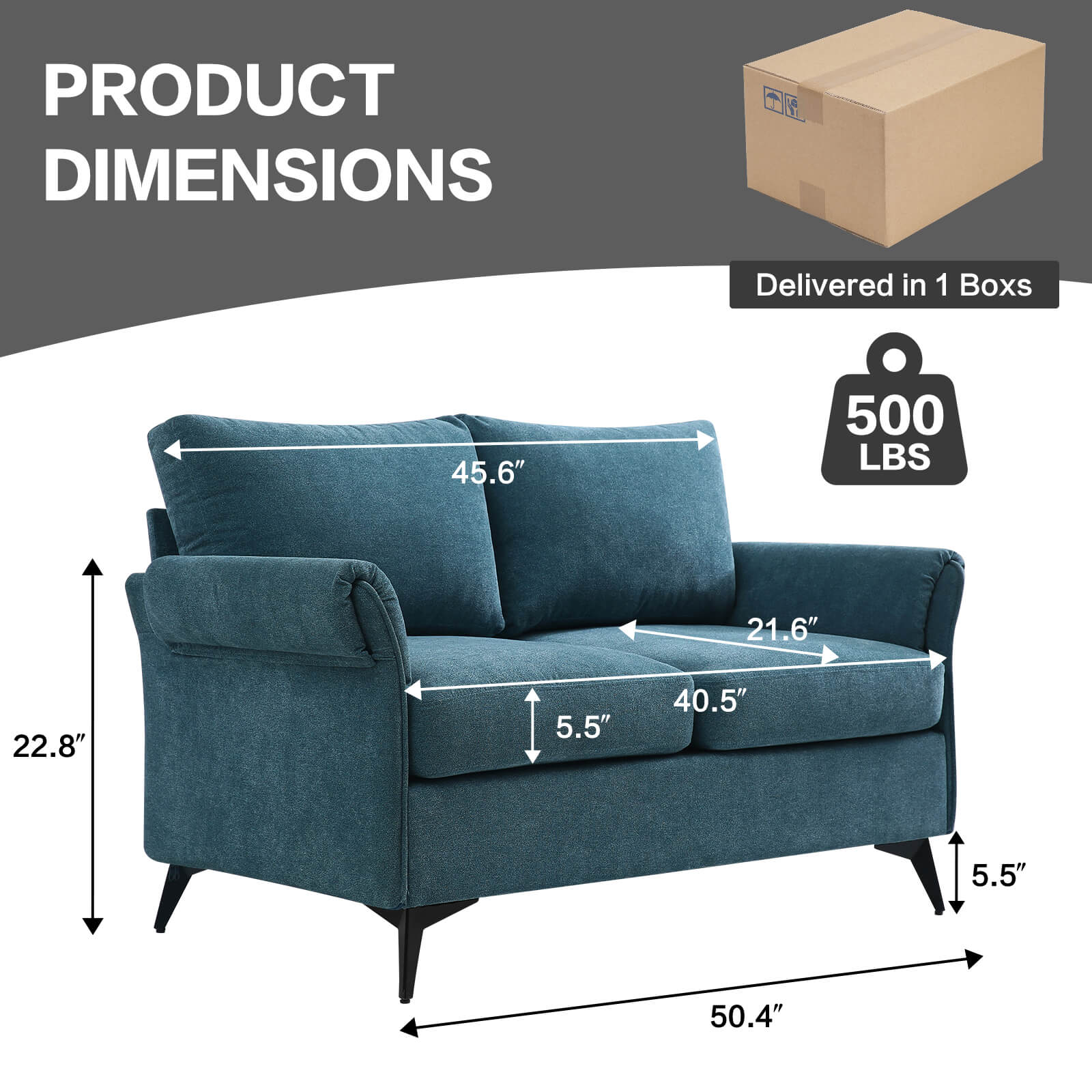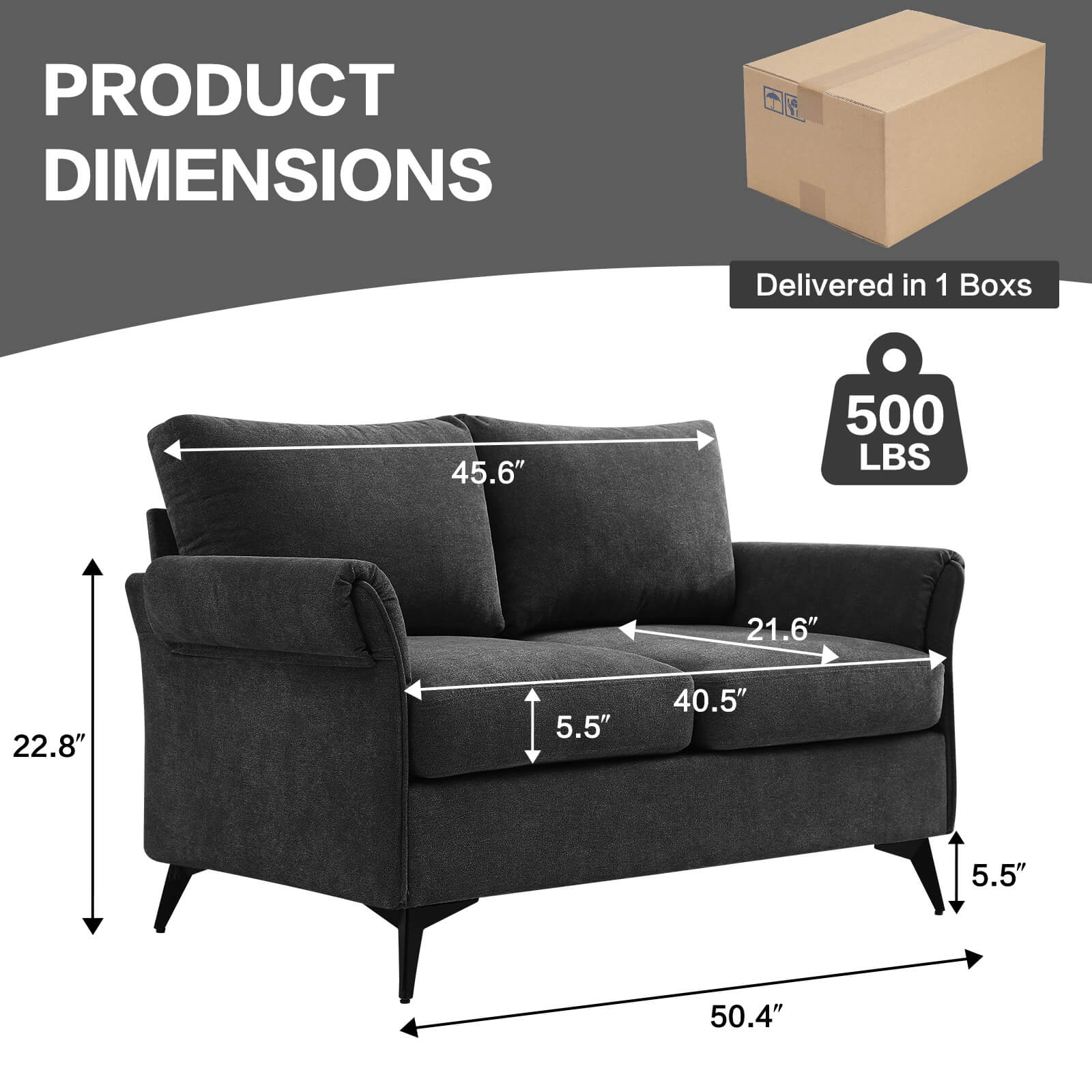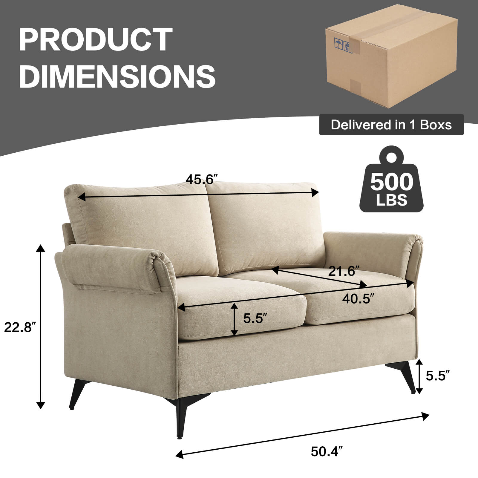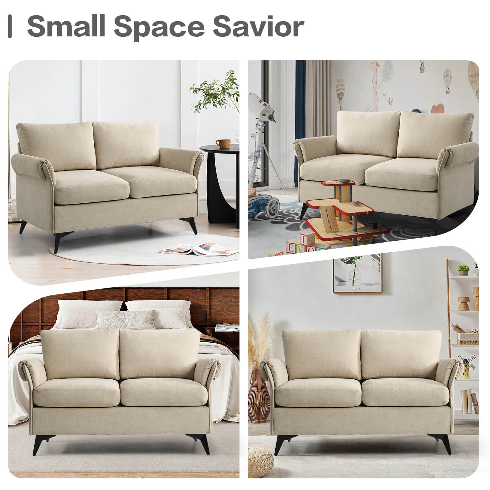 Comfortable Sharing Space: This sofa measures 26.38 inches deep x 44.88 inches wide x 32.68 inches high, which is enough for two people to share easily. It is filled with high-elastic foam and high-quality springs, and is equipped with a breathable and skin-friendly linen fabric seat, which provides a soft, comfortable and supportive sitting posture, completely relieving the fatigue of the day. In addition, you can adjust the seat cushion angle to better fit the curve of your back, giving you ultimate comfort.