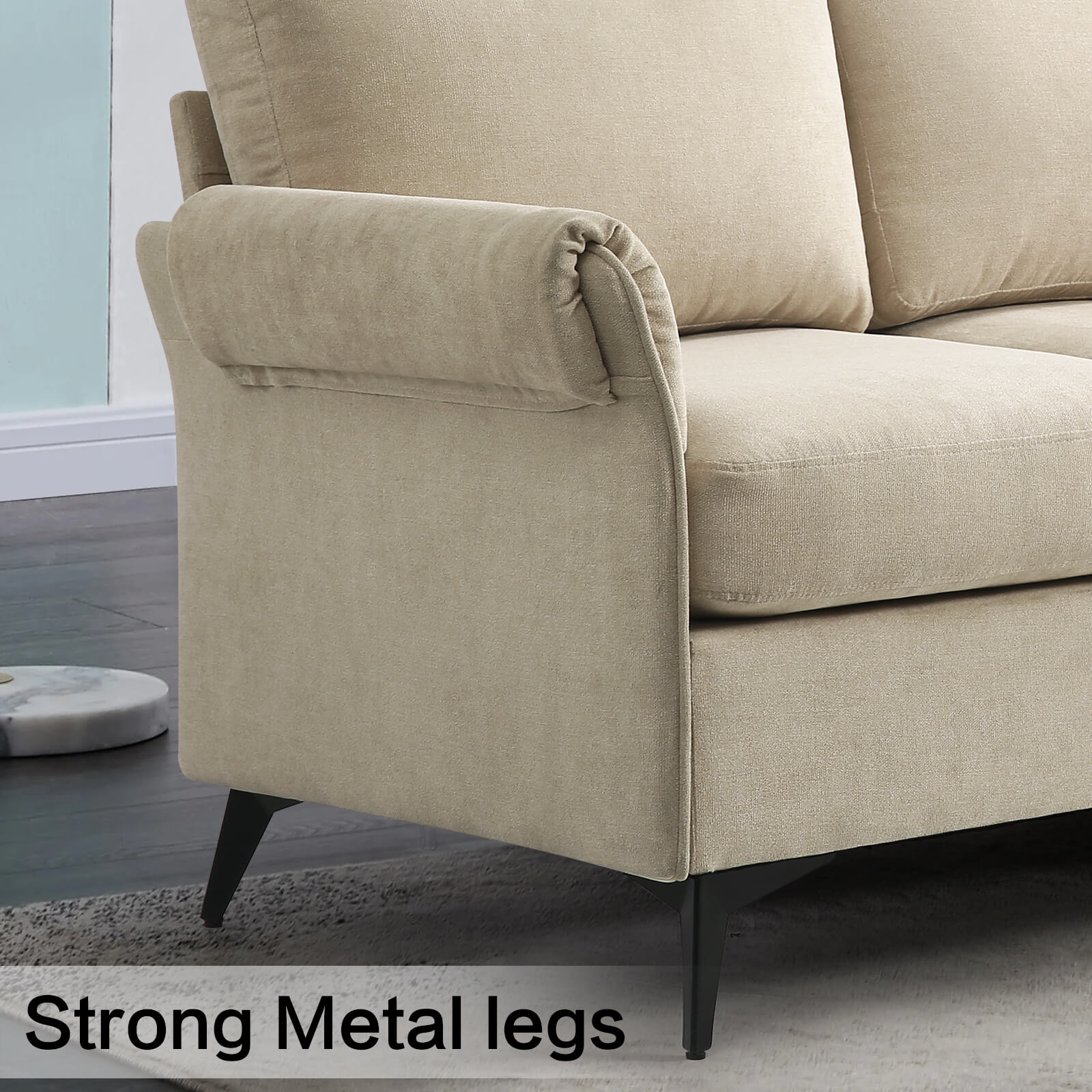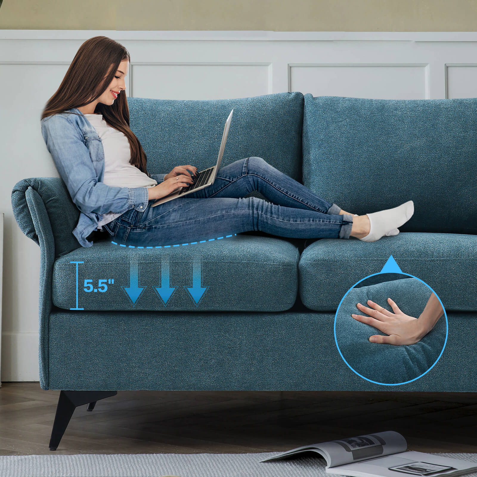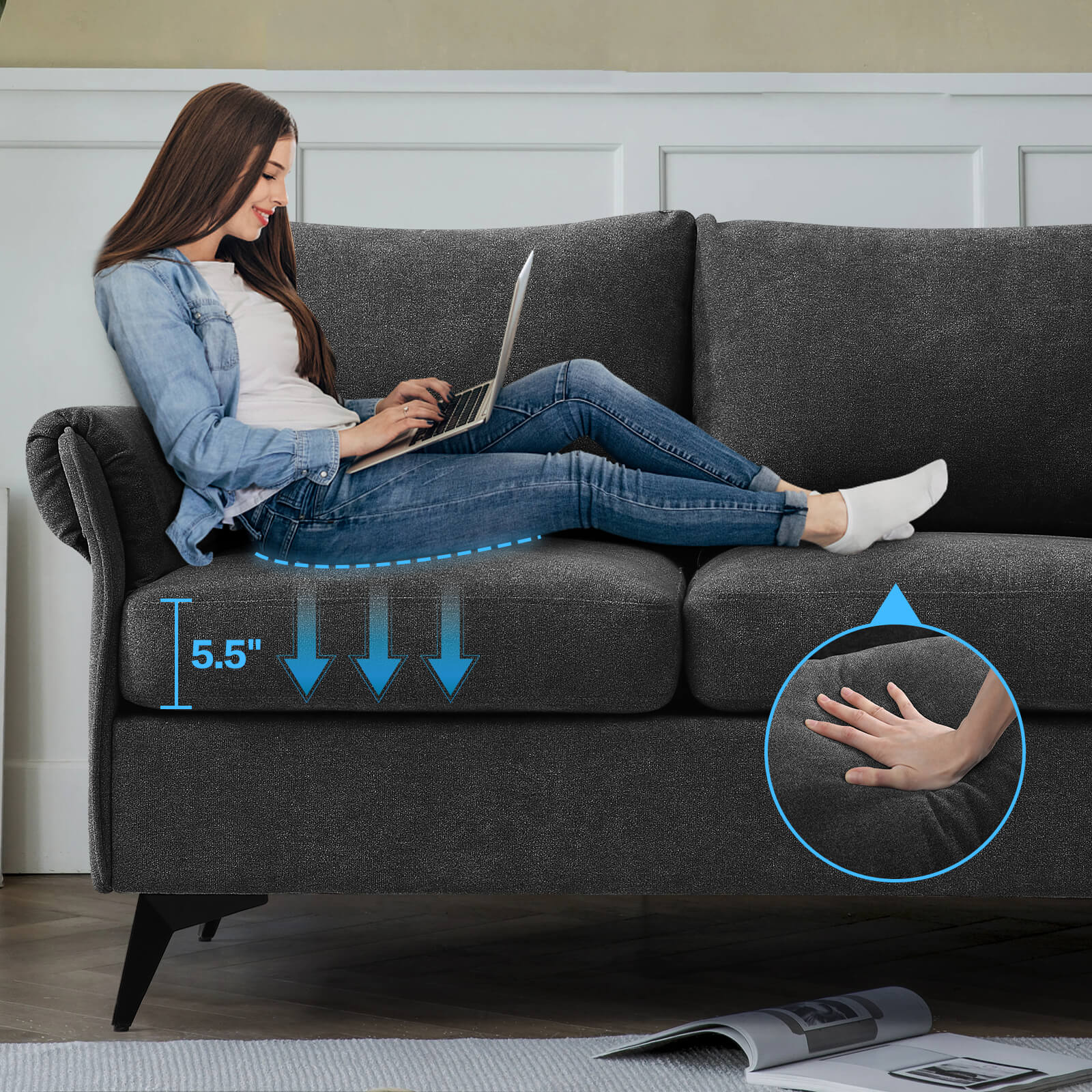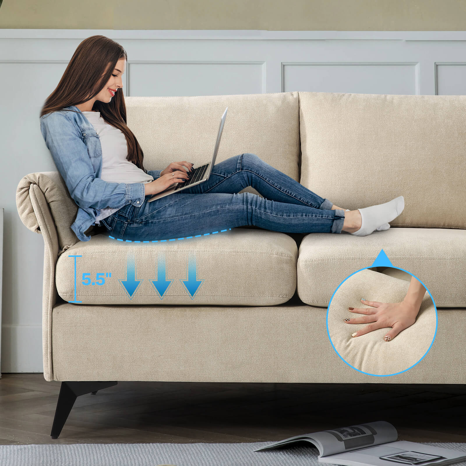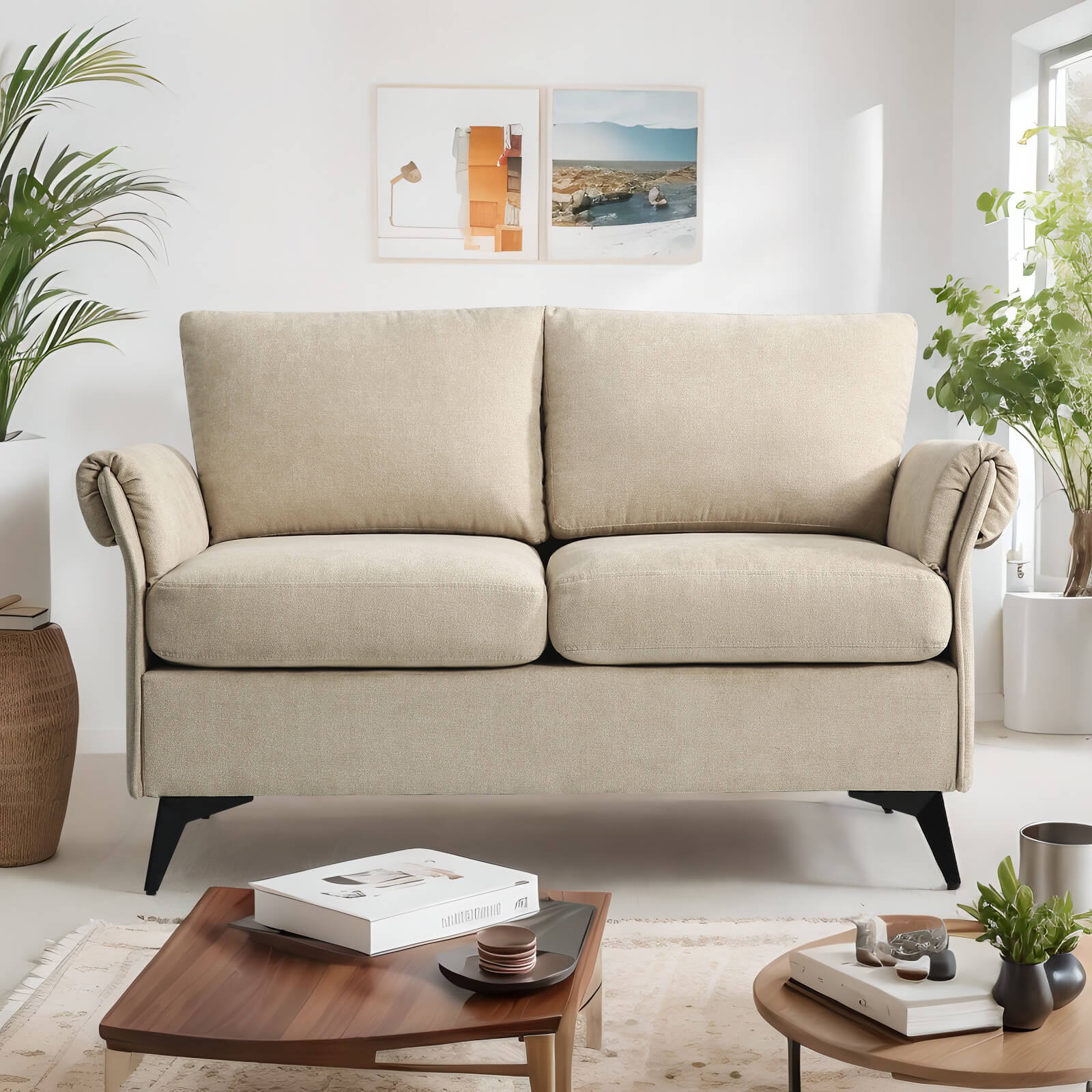 Comfortable Sharing Space: This sofa measures 26.38 inches deep x 44.88 inches wide x 32.68 inches high, which is enough for two people to share easily. It is filled with high-elastic foam and high-quality springs, and is equipped with a breathable and skin-friendly linen fabric seat, which provides a soft, comfortable and supportive sitting posture, completely relieving the fatigue of the day. In addition, you can adjust the seat cushion angle to better fit the curve of your back, giving you ultimate comfort.