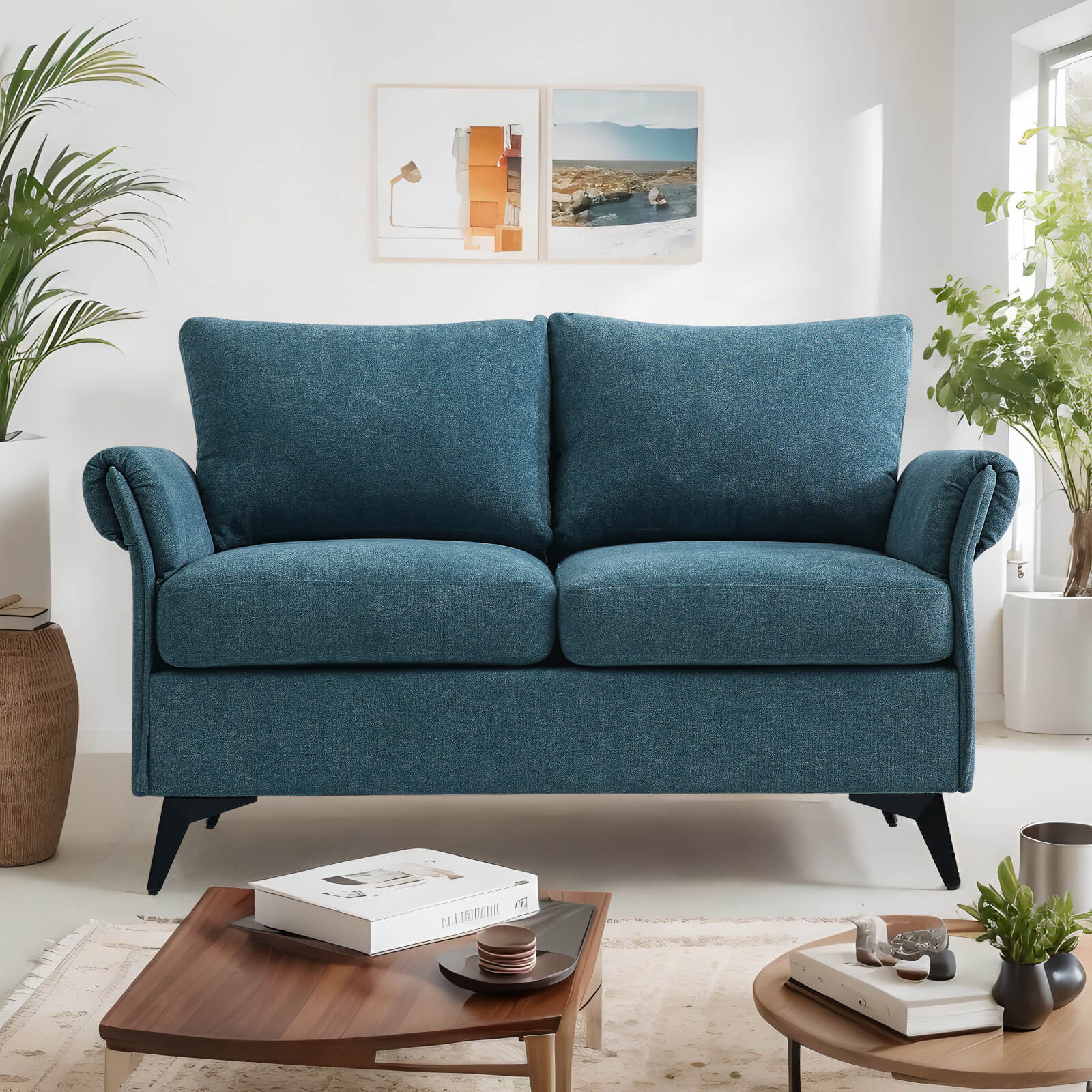 Excellent structural design and delicate aesthetics: The design of the solid wood frame allows this loveseat to firmly support a weight of up to 300 pounds. We have undergone strict quality testing to ensure that the seat is strong and reliable. The metal tapered legs of the sofa give it a unique medieval style, creating a harmony between classical and modern aesthetics, while also perfectly achieving a strong load-bearing capacity.