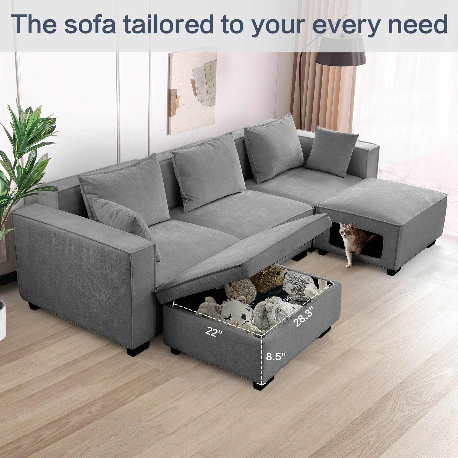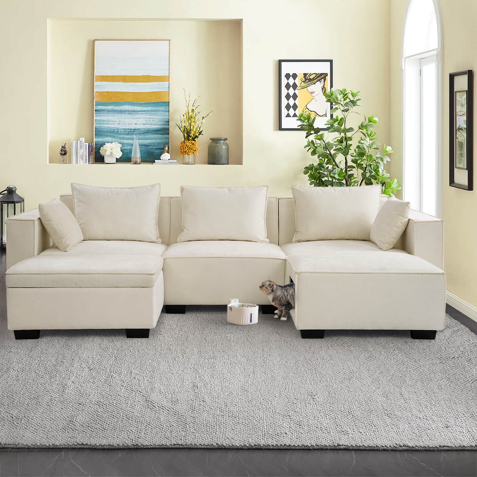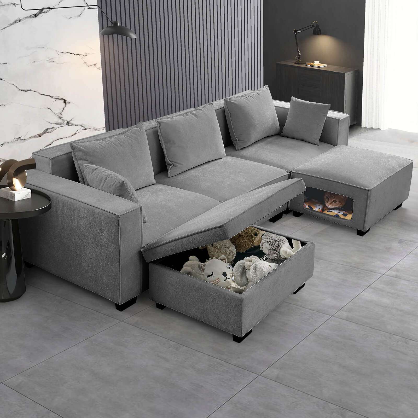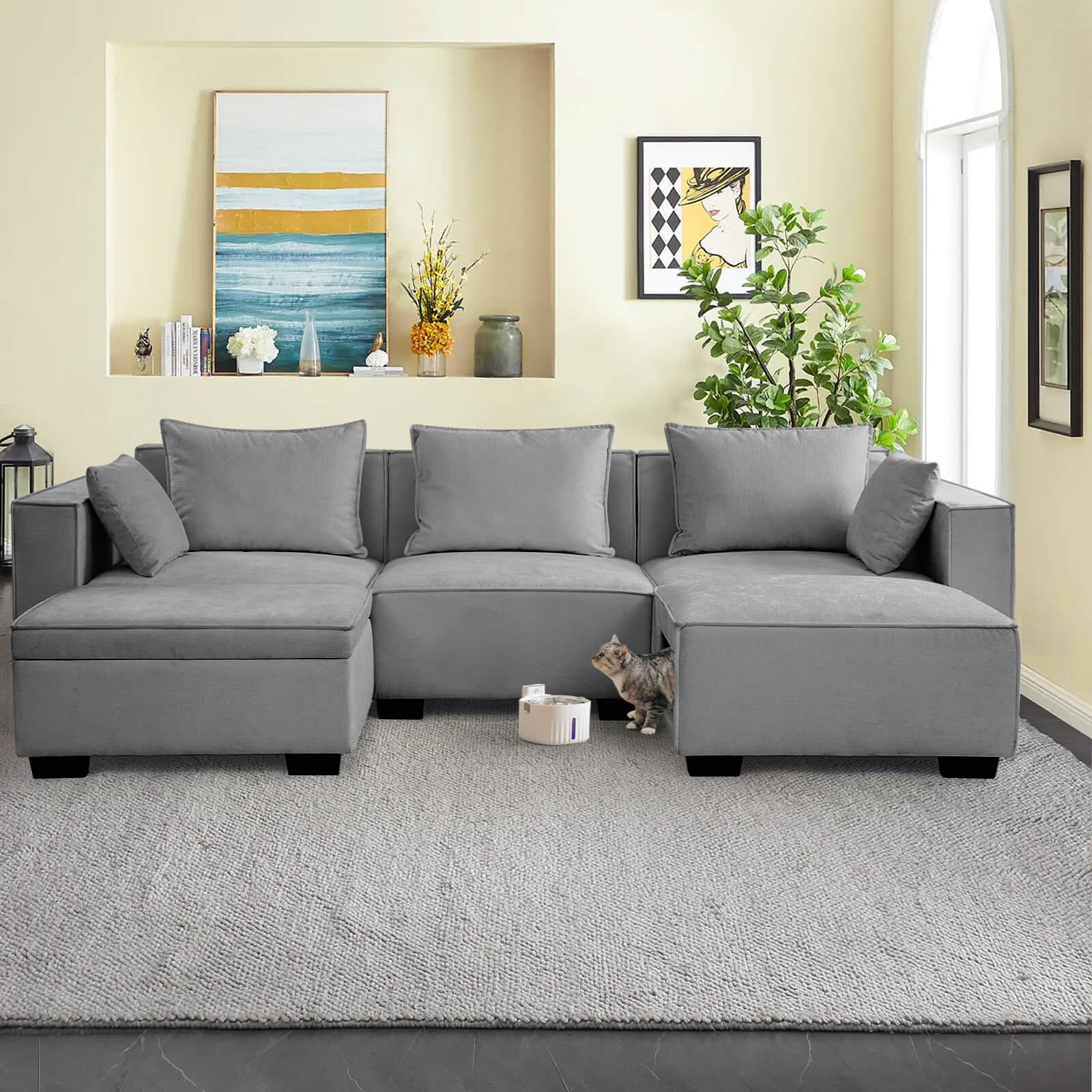 Modular Sectional 5 Seat Sofa, Extra Large U Shaped Couch with Storage & Pet Ottoman