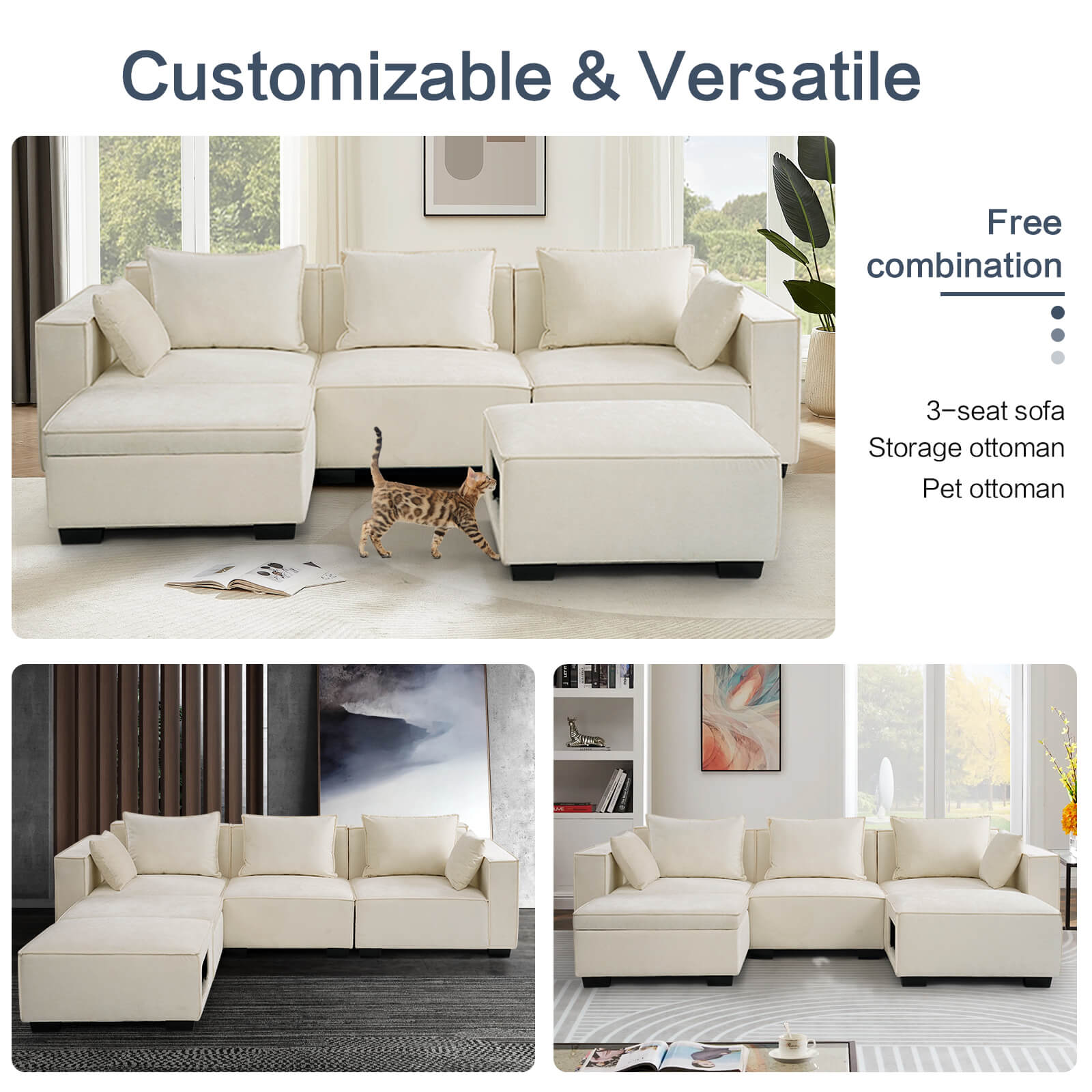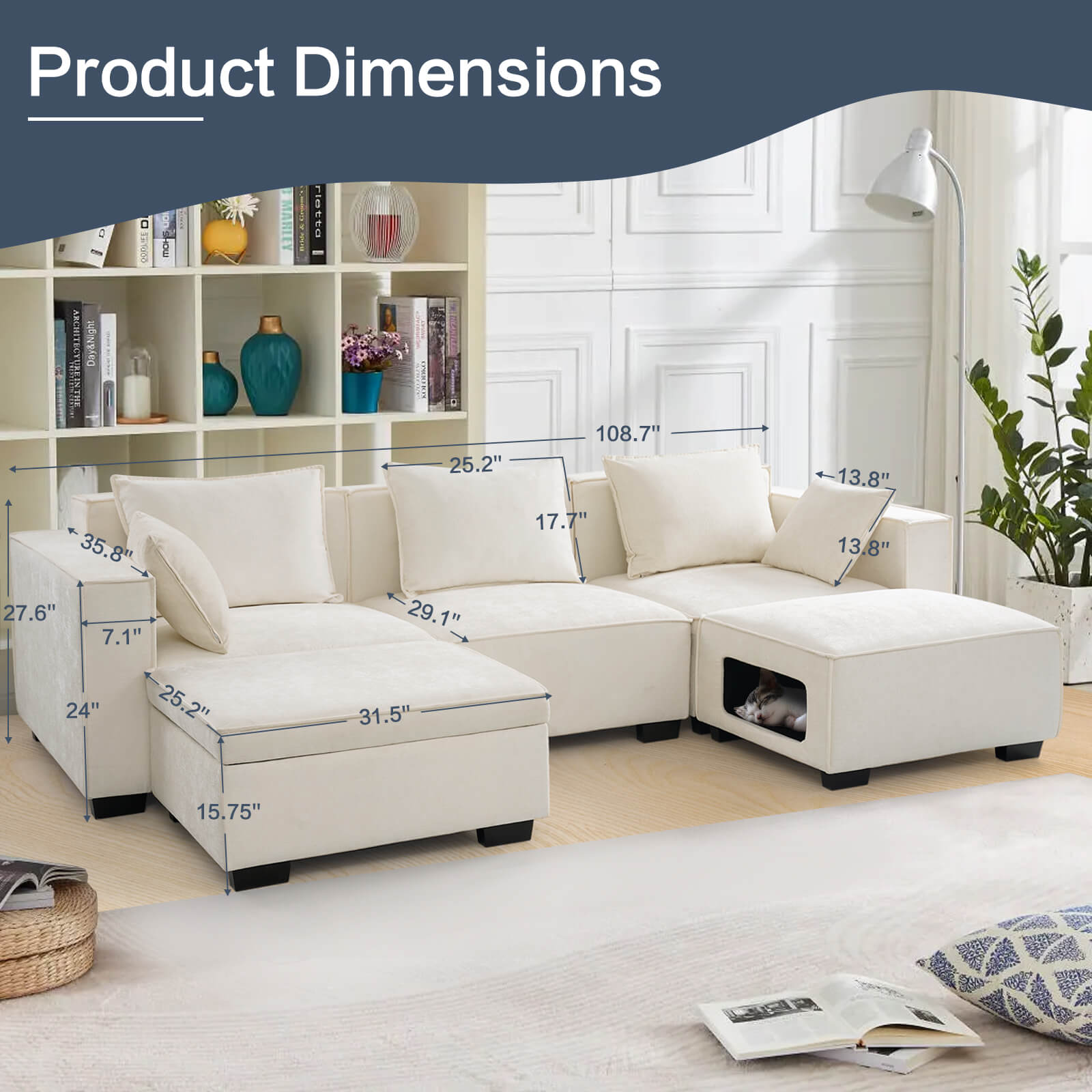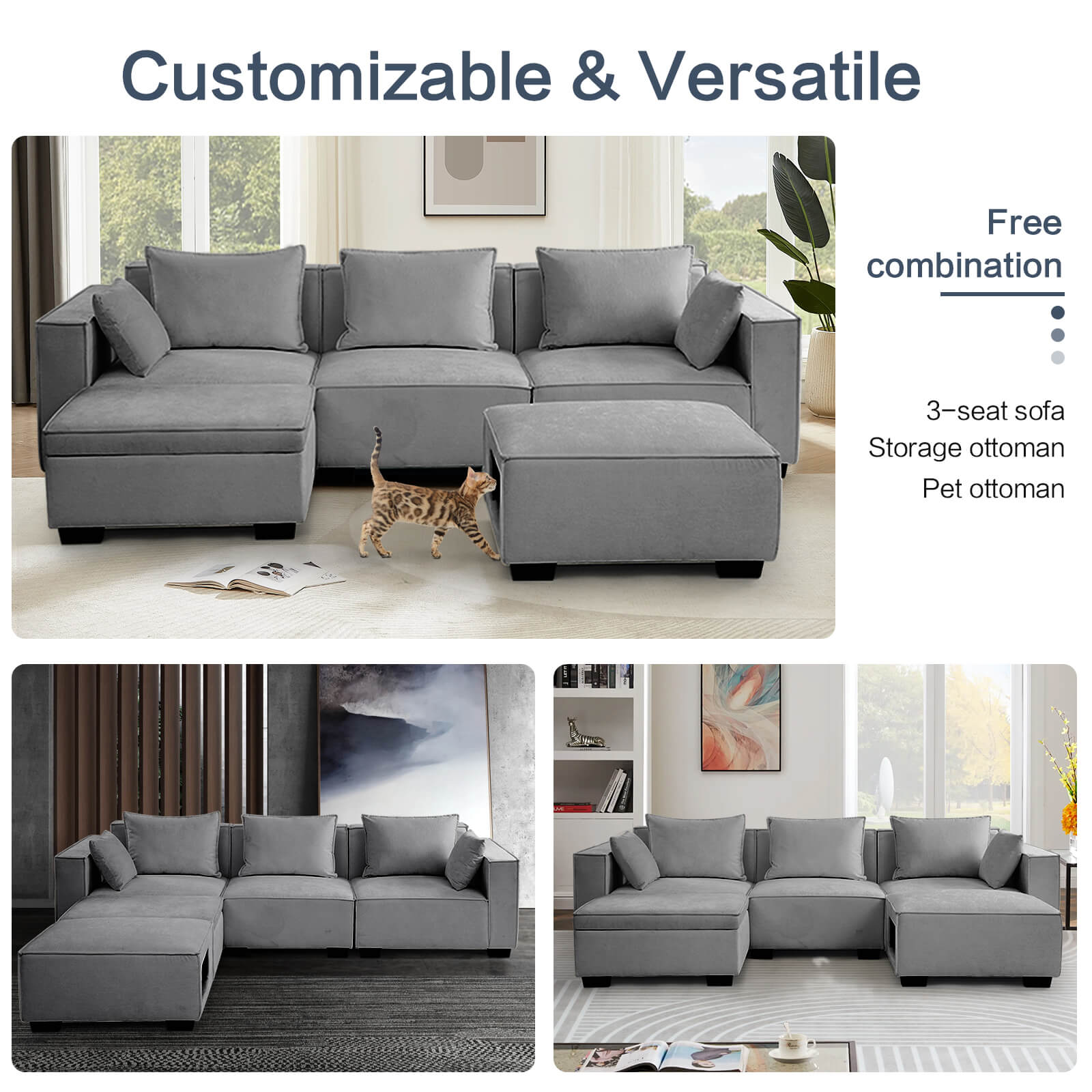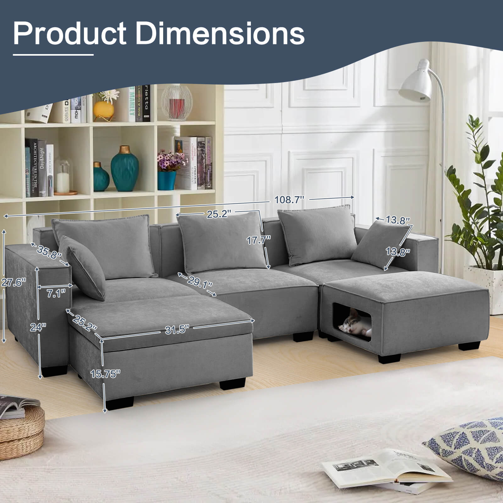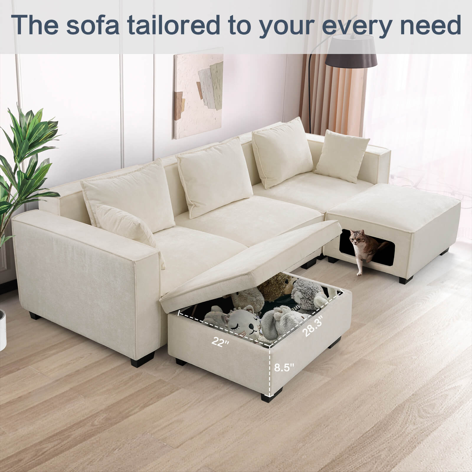 Modular Sectional 5 Seat Sofa, Extra Large U Shaped Couch with Storage & Pet Ottoman