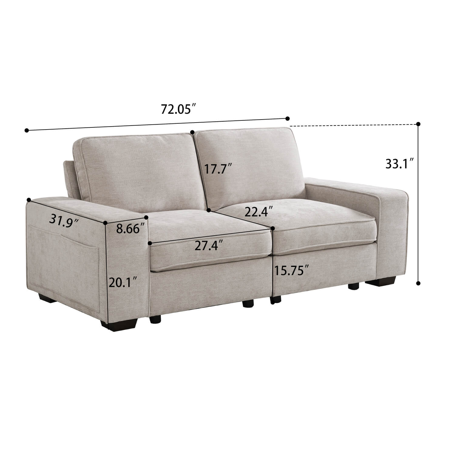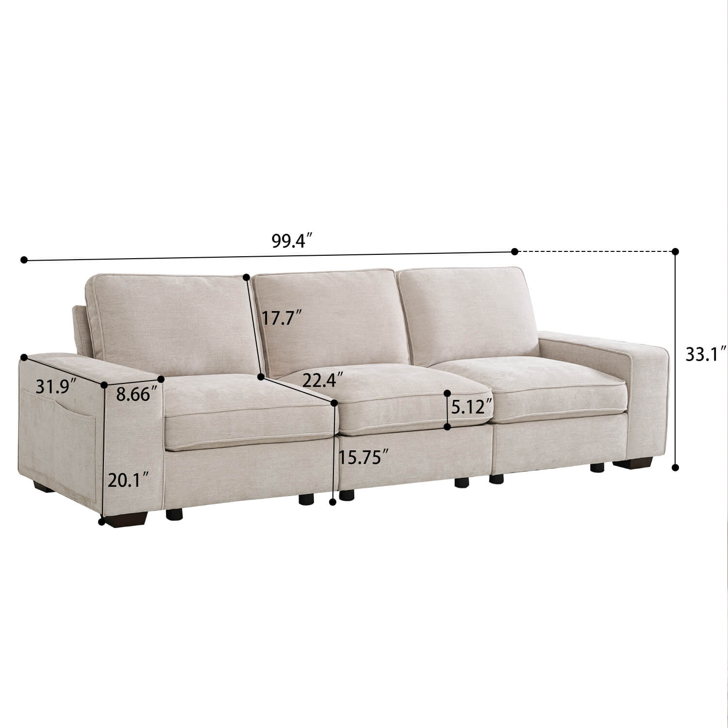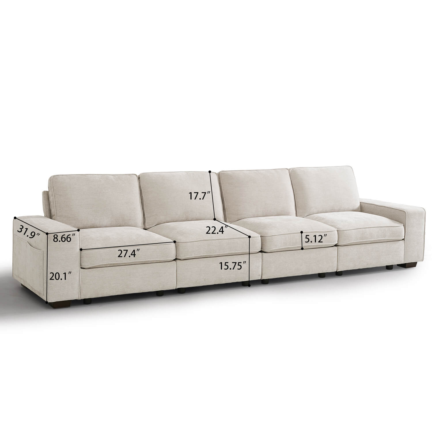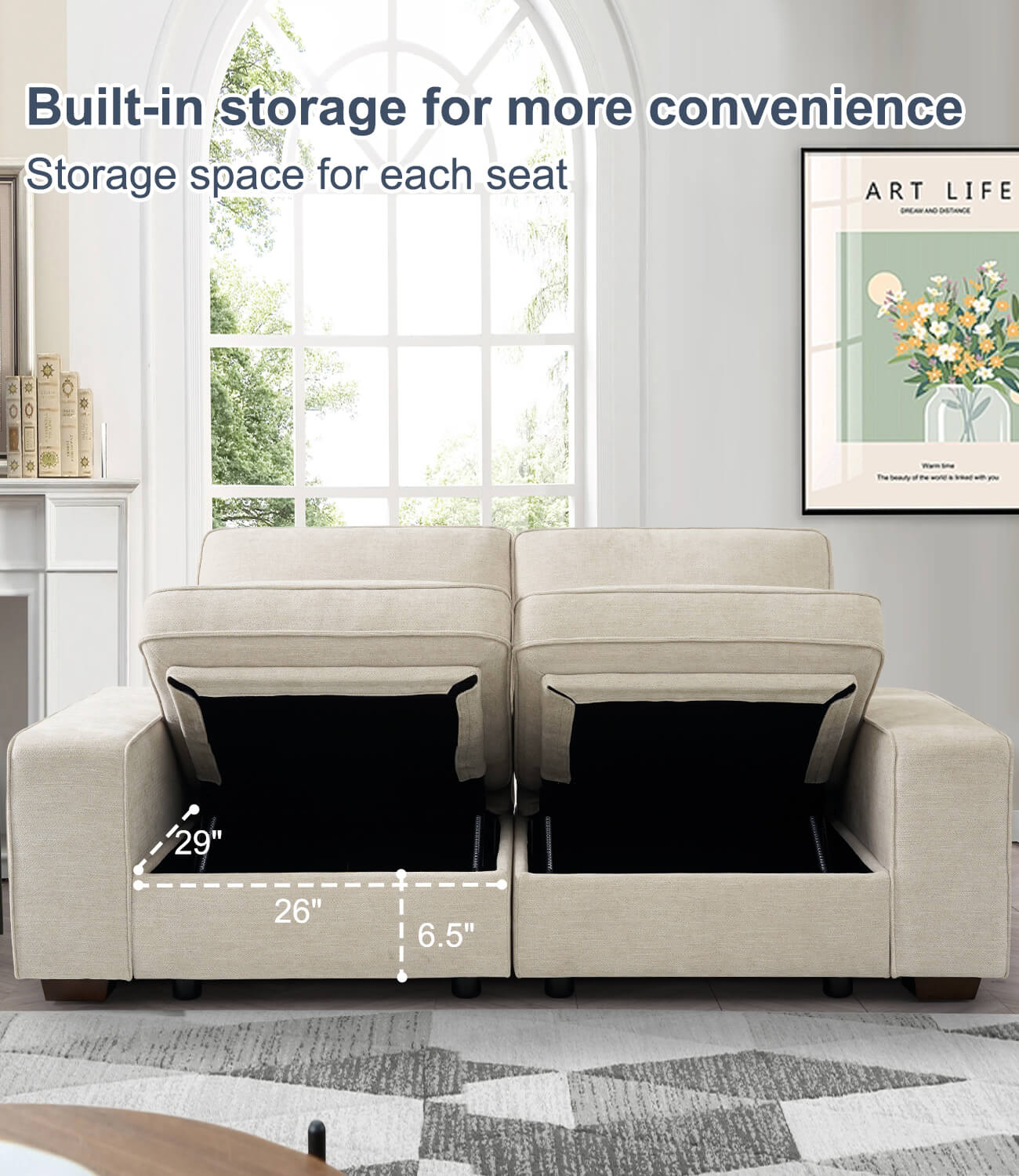 Convenient Storage for All Seats: Storage under each seat offering convenient space for stashing away magazines, blankets, pillows, and more. Enjoy the convenience of keeping your space tidy and organized effortlessly. Storage dimensions: 29"* 26"* 6.5“