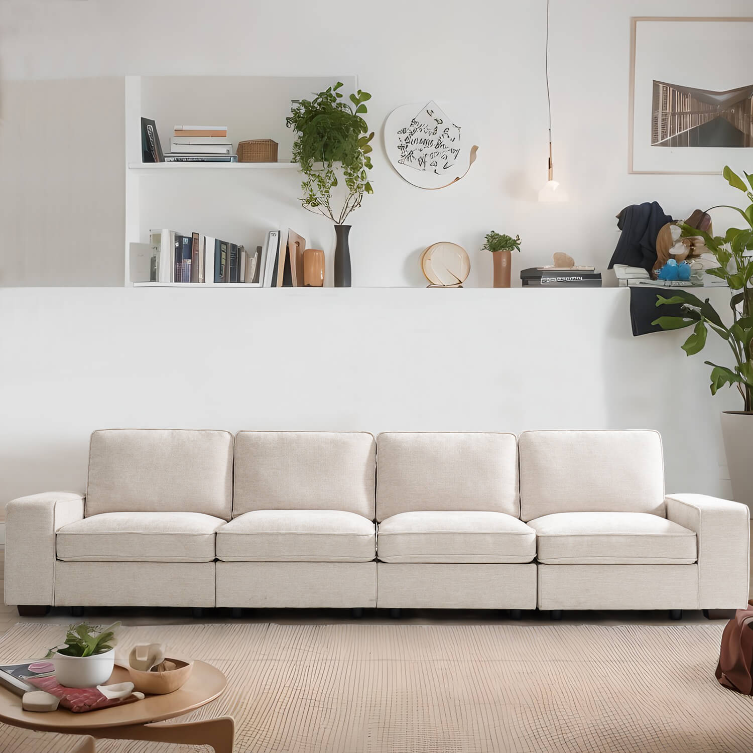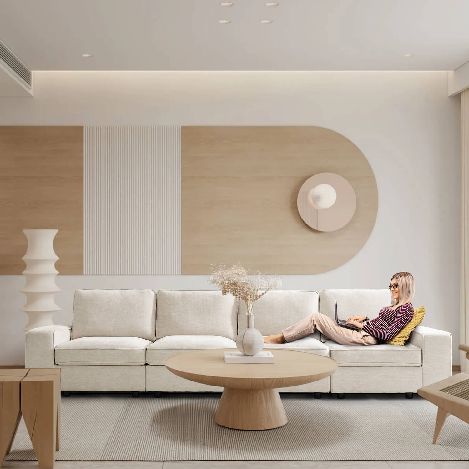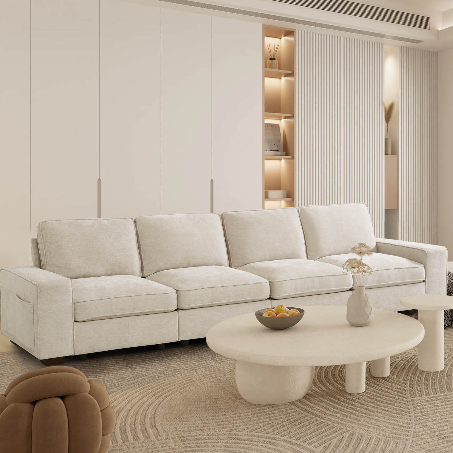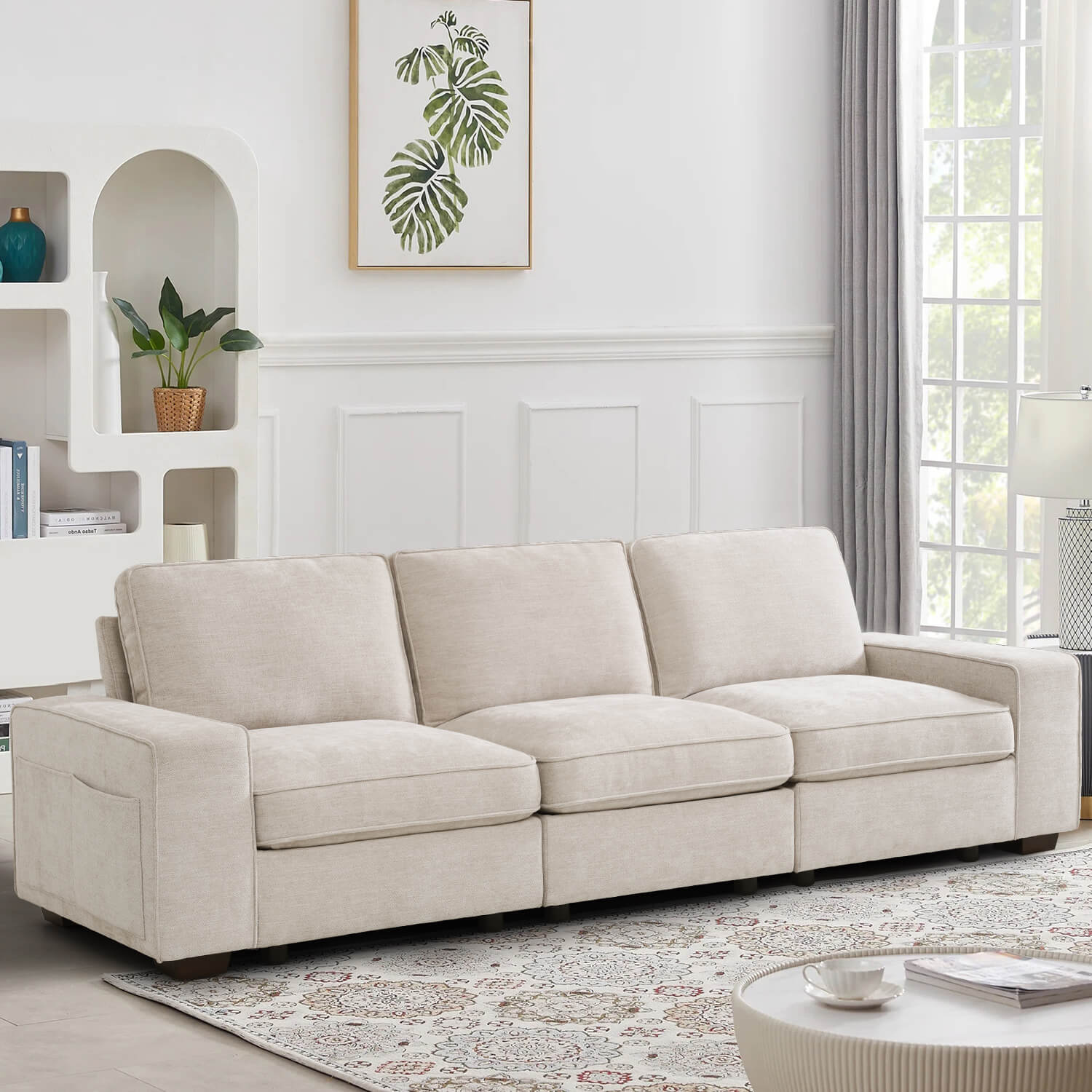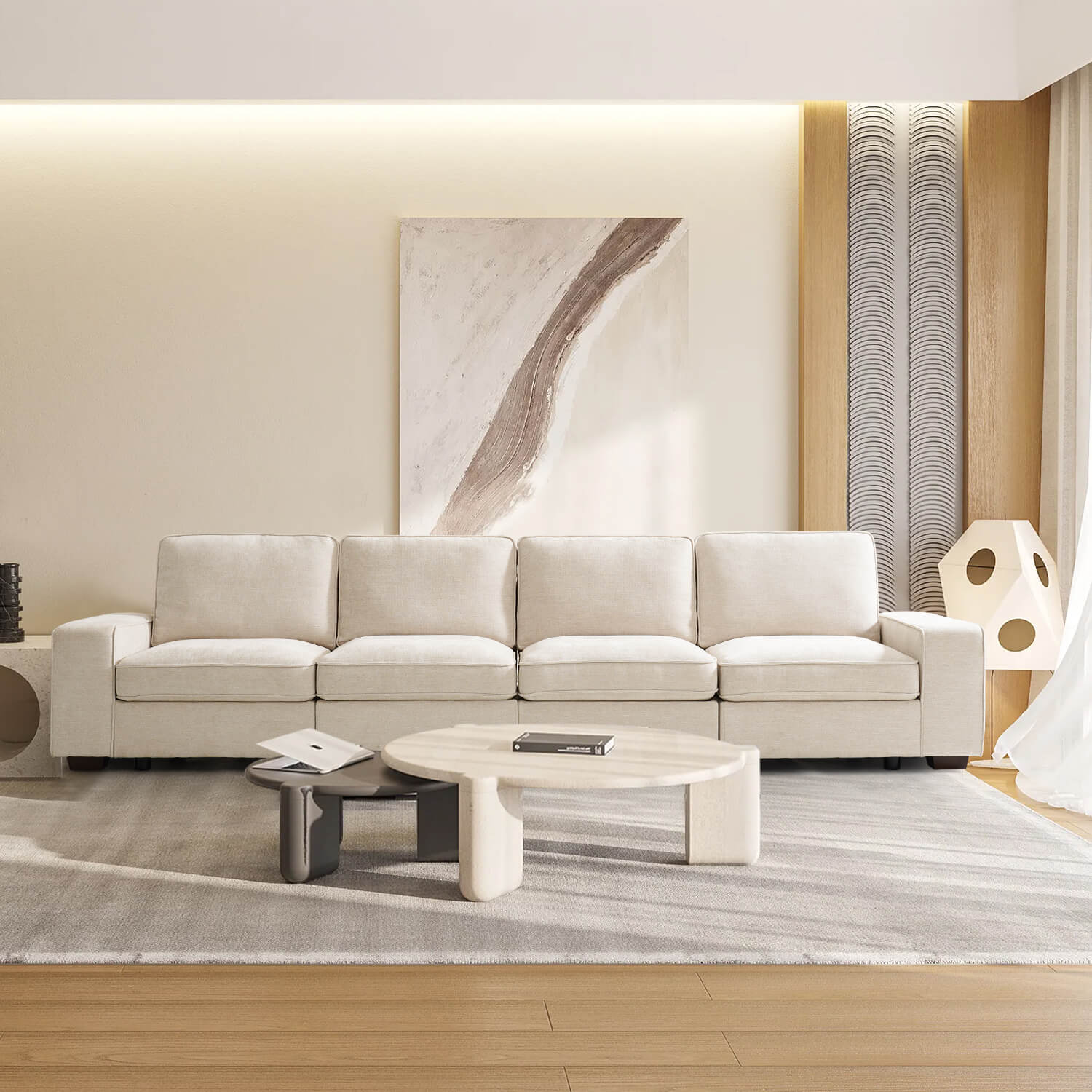 Flexible Modular Combination: With its versatile modular design, the sofa offers endless possibilities for tailoring the arrangement to fit any room layout, seamlessly blending with other furniture meanwhile catering to various usage scenarios and demands.