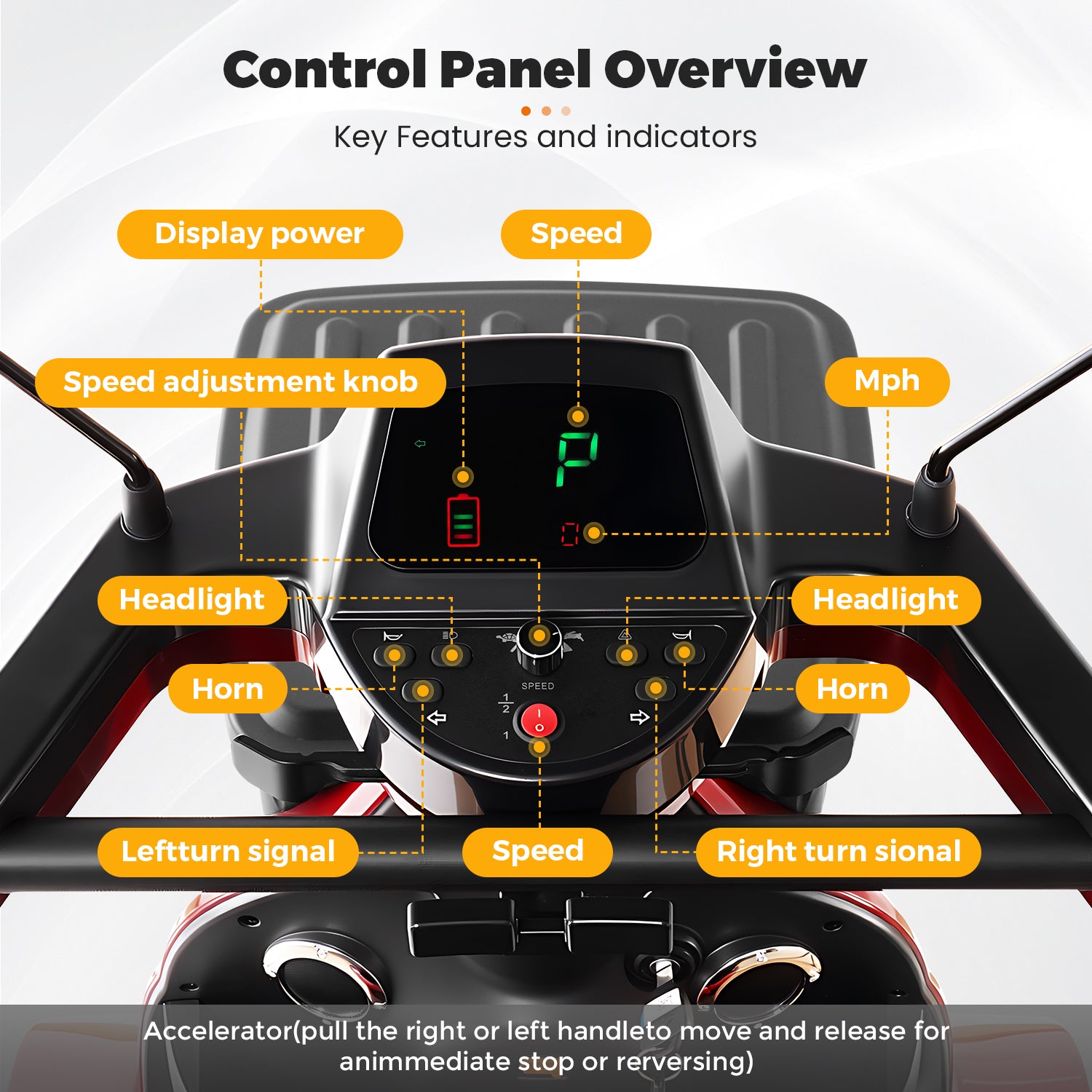 - 【Key Specifications】: This Travel Mobility Scooter features a 20A battery with a range of up to 30 miles on a full charge, ensuring a smooth ride and ample power. Its adjustable speed, nighttime LED lighting, run-flat tires, and anti-rollover design enhance driving safety.