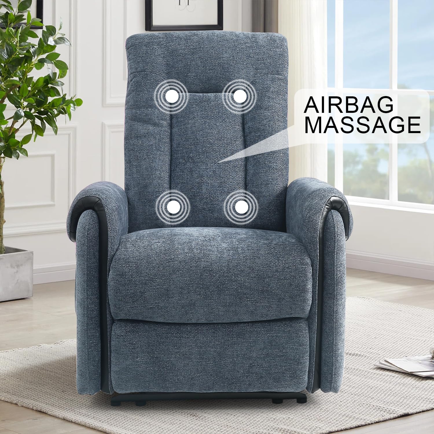THLAND Reclining Massage Chair for Adults Chenille Fabric Single air Bag Massage Sofa Power Recliner Chair for Living Room Theater Seating Adjustable Back headrest